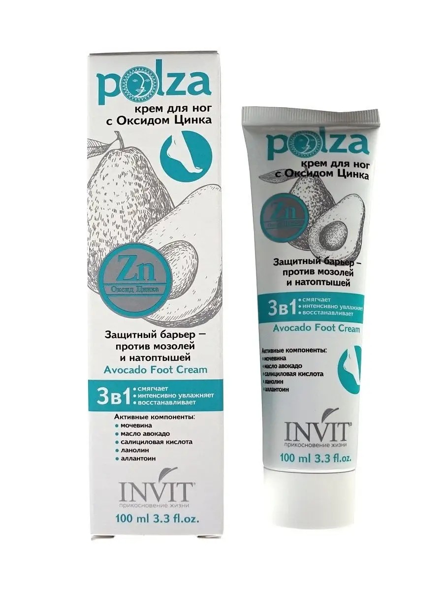 Avocado Foot Cream with Zinc Oxide intensely moisturizes and eliminates rough skin, dry calluses, and corns. Urea and Avocado Oil effectively soften the skin of the feet, deeply nourish and moisturize, preventing the formation of corns and cracks. Lanolin and Allantoin promote rapid restoration of epidermal integrity, accelerate tissue healing, and provide an antiseptic effect.