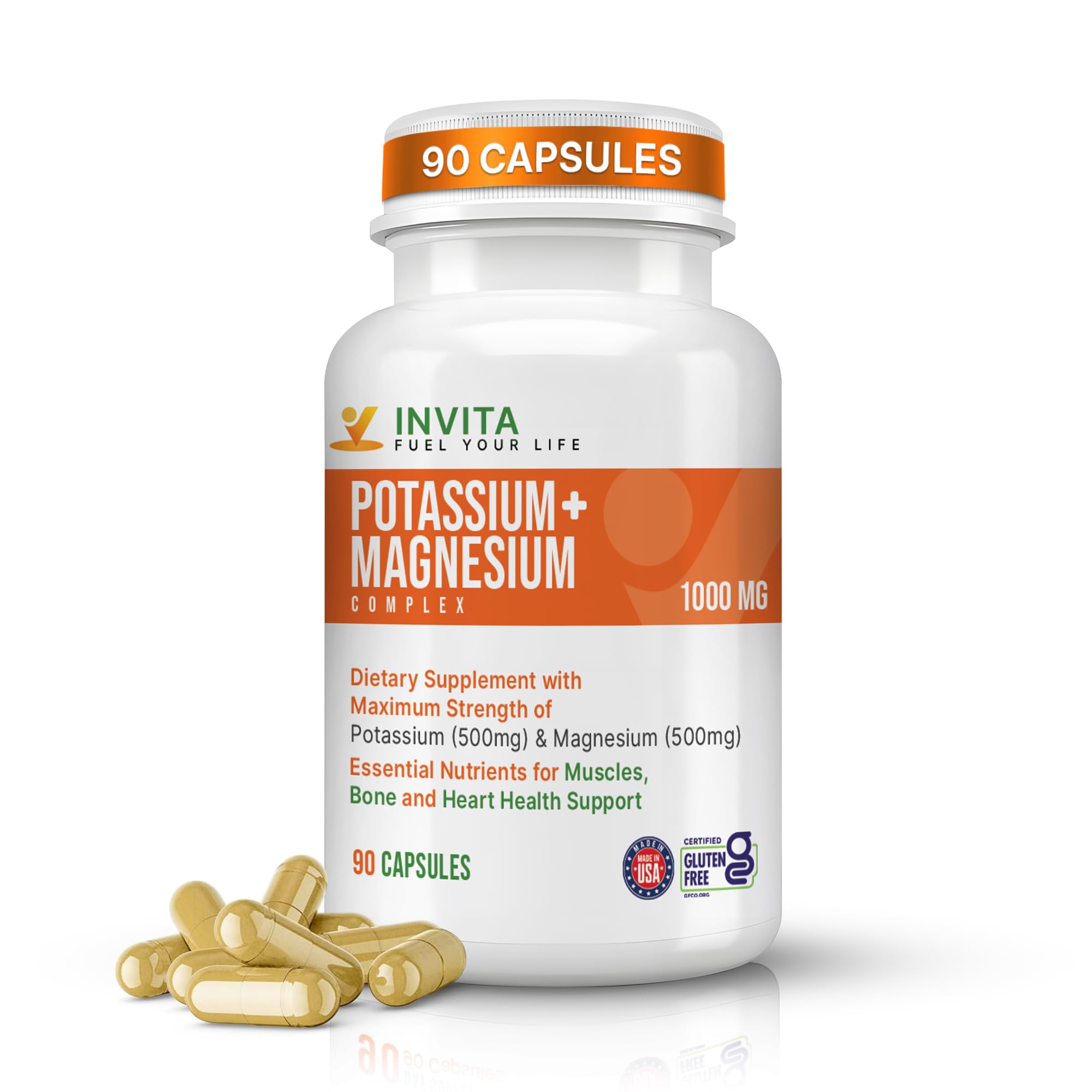 Invita Potassium Magnesium Complex 1000 MG for Leg & Muscle Support I (90 Capsules) - High Absorption Potassium Aspartate with Magnesium Aspartate Oxide Glycinate Gluconate & Citate 90 Count (Pack of 1)