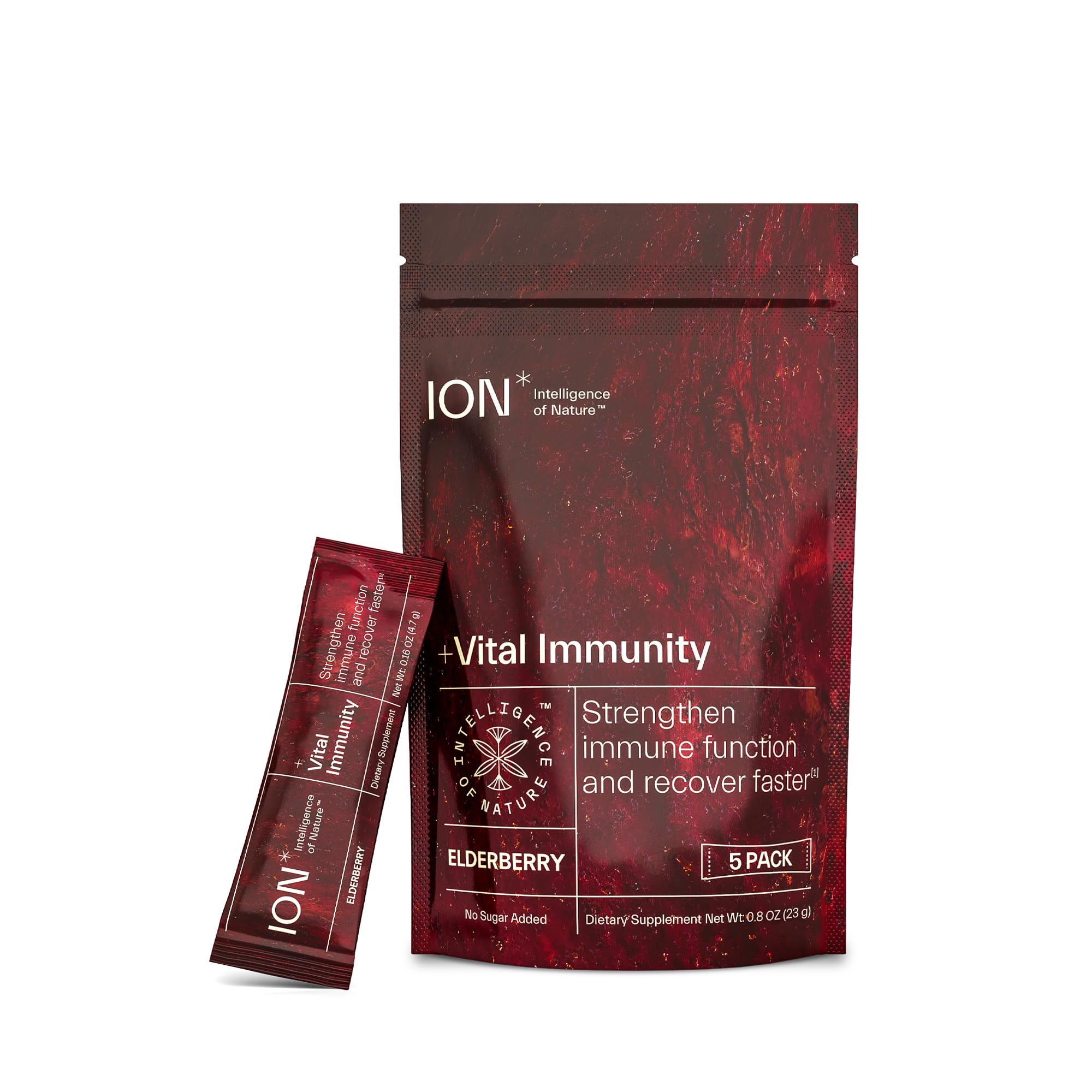 ION* Intelligence of Nature Vital Immunity Drink Mix - Immune Support with Vitamin C & Adaptogen Mushrooms Daily Wellness Drink Packet Supplement Travel Friendly - Elderberry Flavor 5 Packets 0.16 Ounce (Pack of 5)