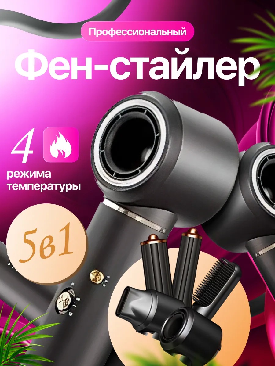 Профессиональный фен 5 в 1 объединяет функции укладки и ухода за волосами. Фен стайлер для волос предлагает профессиональный уход благодаря инновационным насадкам с эффектом Коанда. Эти насадки позволяют создавать великолепные объемные локоны, превращая укладку в простое и увлекательное занятие. Высокая скорость сушки минимизирует риск повреждения структуры, обеспечивая надежную защиту.