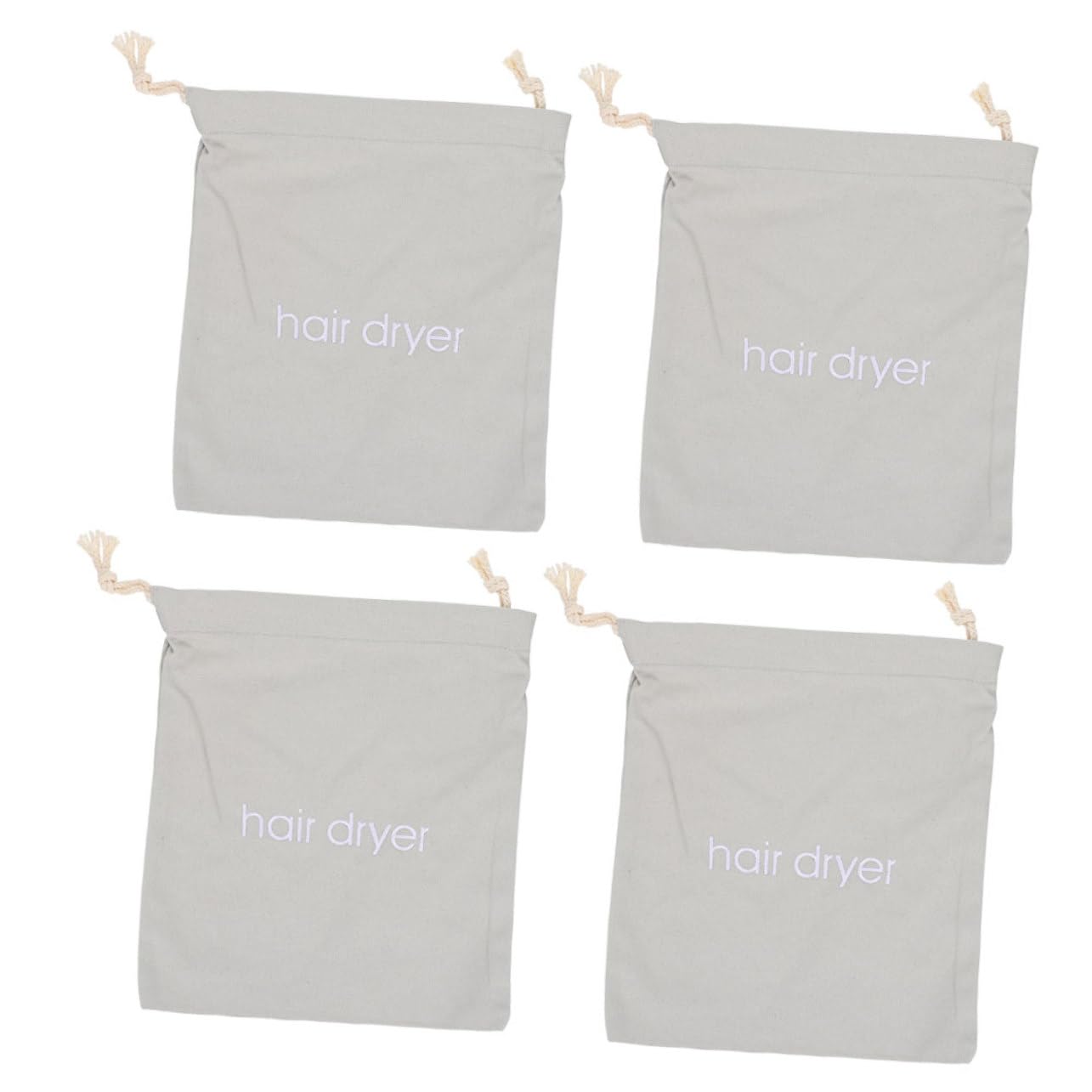 Package List 4 x Storage Bags Characteristics -Material:Cloth hair dryer bag -Size:33.00X30.00X0.50cm 12.97X11.79X0 drawstring storage bags. -Color:Light Grey travel hair dryer bags - Optimized material, reusable and wear-resistant, can be washed repeatedly and used for a long time, and it will still look new practical bags. - Easy and convenient to use with its drawstring design. You can close the storage bag with an easy pull storage organizers. - Fine workmanship and preferred lint materials, delicate details assured, not easy to be damaged hair dryer drawstring bags. - The portable and multipurpose Hair Dryer Storage Bag is made of superior material, durable for lasting use hair dryer receive bag. - Lightweight and sturdy enough, it can be carried when you are traveling, very convenient hair dryer dustproof bags. Goods Description hair dryer Reasonable size and does not take up too much space, suitable for indoor and outdoor travel use.bathroom shower bags Multi-function, it can be used to store many kinds of items, such as hair dryer, small , some sundries, etc.travel toiletry bags Made of high-grade cloth material, this Hair Dryer Bag is very wear-resistant and durableStorage bags for travel-- meticulously designed with strong drawstrings to keep things securely inside the hair dryer storage. Canvas-- fine workmanship and preferred lint materials, delicate details assured, not easy to be damaged. Storage bag-- easy and convenient to use with its drawstring design. you can close the storage bag with an easy pull. Hair dryer receive bag-- a smart way to store a hair dryer in hotels, rentals, guest houses or even at home. Hair tools travel bag-- you can fold it when you go on a trip, which can help you to save space, very practical.