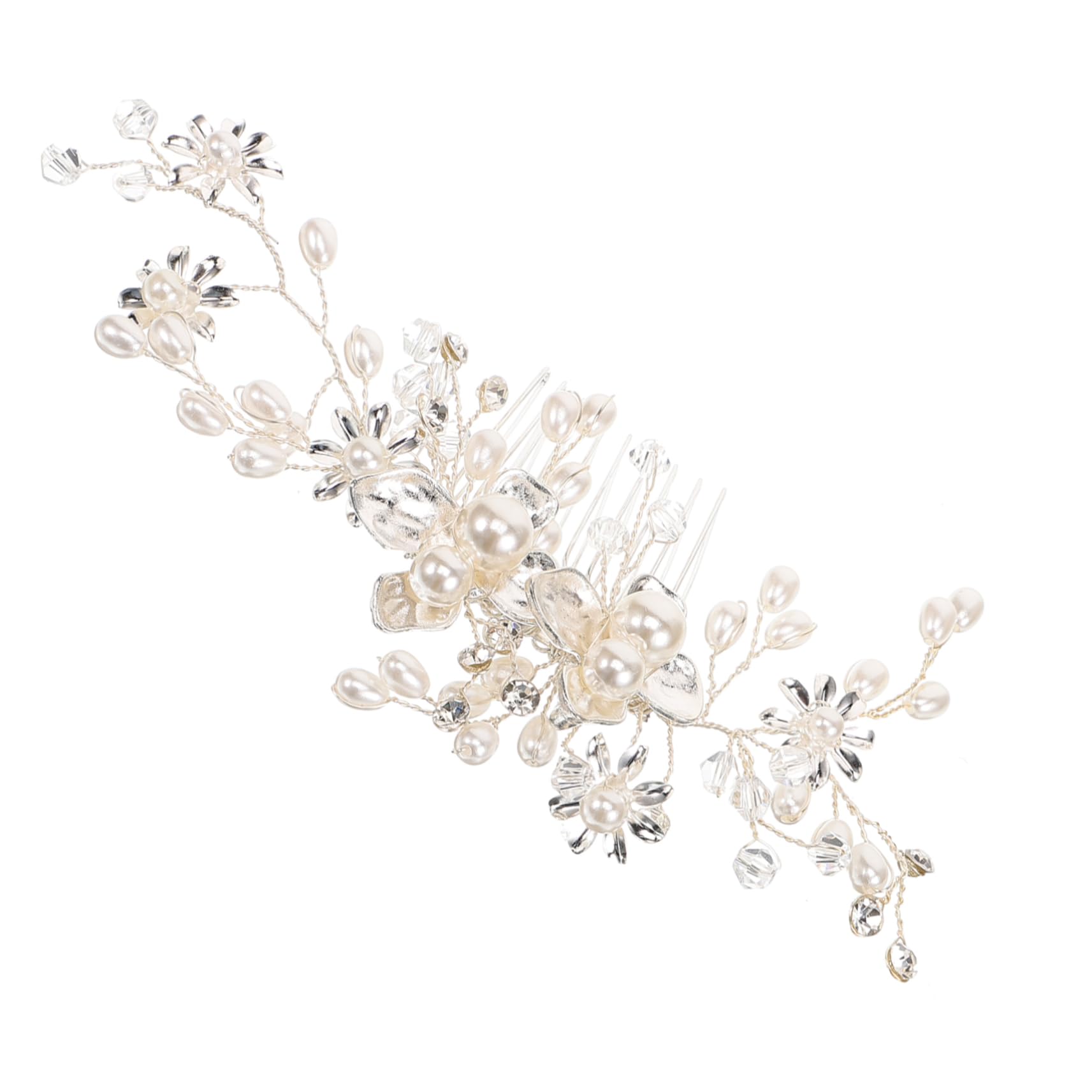 Package List 1 x Wedding Hair Comb Characteristics -Color:Silver prom headpiece -Material:Alloy wedding headpiece -Size:13.50X6.00X1.50cm/5.31X2.36X0 bride headpieces for wedding. - Inlaid pearls are firmly attached on the surface of the hair comb, will not fall off and hard to fade hair pieces for wedding. - The pearl comb for hair is suitable for wearing on weddings, birthdays, Valentine's Day and any other special occasion pearl hair accessories. - The pearl comb for hair decorative adds more charm to your hairstyles, making your more eye-catching wedding hair comb - The bride hair comb is firm and not easy to fall off, and can be easily used according to your hairstyle needs silver headpiece. - Delicate hair comb for wedding brides is chic and stylish, easy to go with most of your clothes and hair colors bridal hair accessories for wedding. Goods Information pearl hair accessories Delicate pearls hair comb will give you a unique sense of beauty and leave a deep impression.bridal headpieces This wedding hair comb is designed for versatility, can be accessorized in an updo or worn in a sophisticated hairstyle.bride accessories Perfect for brides and bridesmaids