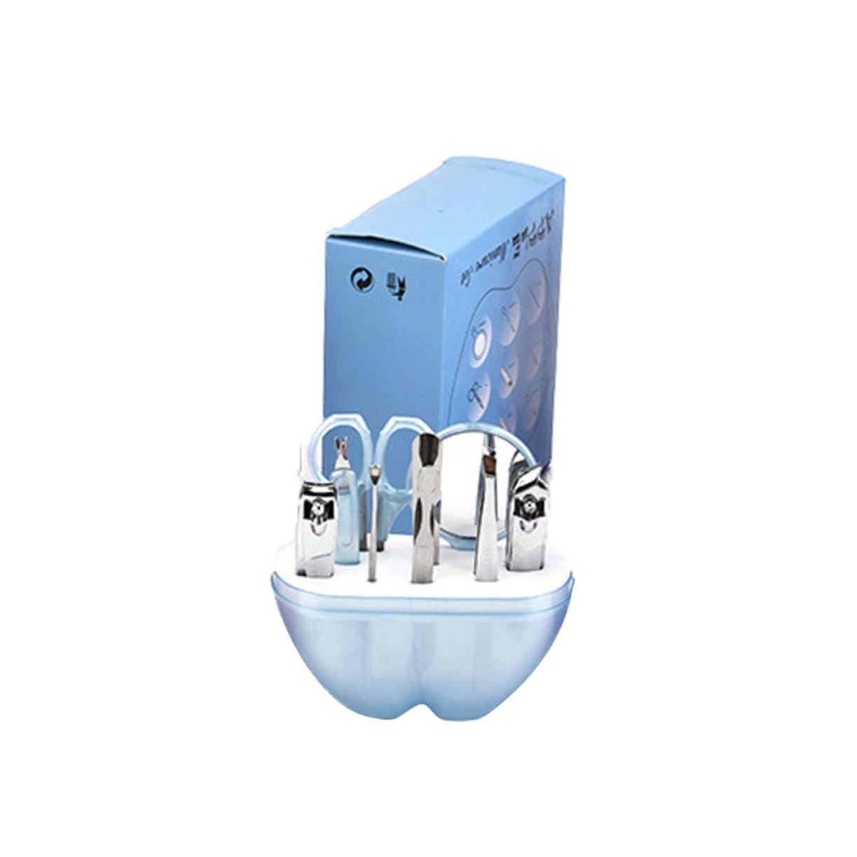 Package List 1 9-in-1 Stainless Steel Lady Eyebrow Scissor Nail Clipper Mirror Cosmetic Set (Sky Blue) Characteristics - Size: Approx. 9 x 5.5 x 10cm 3.5 x 2.2 x 3.9 inch (LxWxH) nail clipper set. - Material: Stainless steel nail file for babies. - Color: As shown infant nail clippers. - 9 in 1 cosmetic set is for camping, travel, hiking and other outdoor sports nail clippers for kids. - With high workmanship, they are smooth and safe in application fingernail trimmer tools. - Great beauty care tool in women's daily life suits for kids. - Comes with an shaped storage case, it is convenient for you to carry about baby suits. Goods Description nail trimmer This item is a 9-in-1 cosmetic set which comes with an shaped storage case for convenient carrying.9 in 1 nail file The complete beauty kit will offer great help in women's daily life.suit It includes a big nail clipper, a small nail clipper, a nail file, eyebrow scissor, earpick, needle, eyebrow tweezer, dead skin fork and a mirrorNail trimmer for-- great beauty care tool in women's daily life. Fingernail trimmer tools-- comes with an shaped storage case, it is convenient for you to carry about. Professional nail clippers-- comes with an shaped storage case, convenient for you to carry about. Nail tools-- 9 in 1 cosmetic set is for camping, travel, hiking and other outdoor sports. Nail kit-- great beauty care tool in womens daily life.