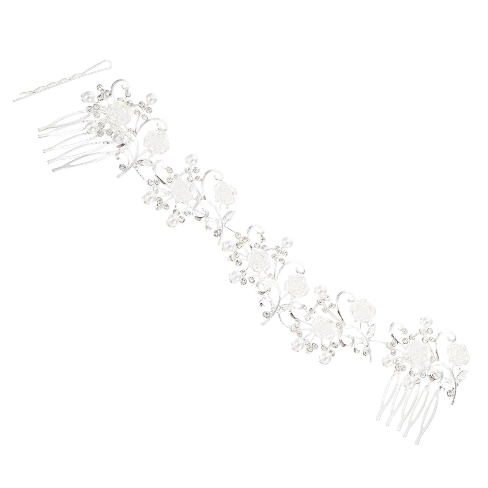 Ipetboom Pearl Decor 1 Pc Comb Flowers Alloy Bride Hair up Rhinestone Hair Comb