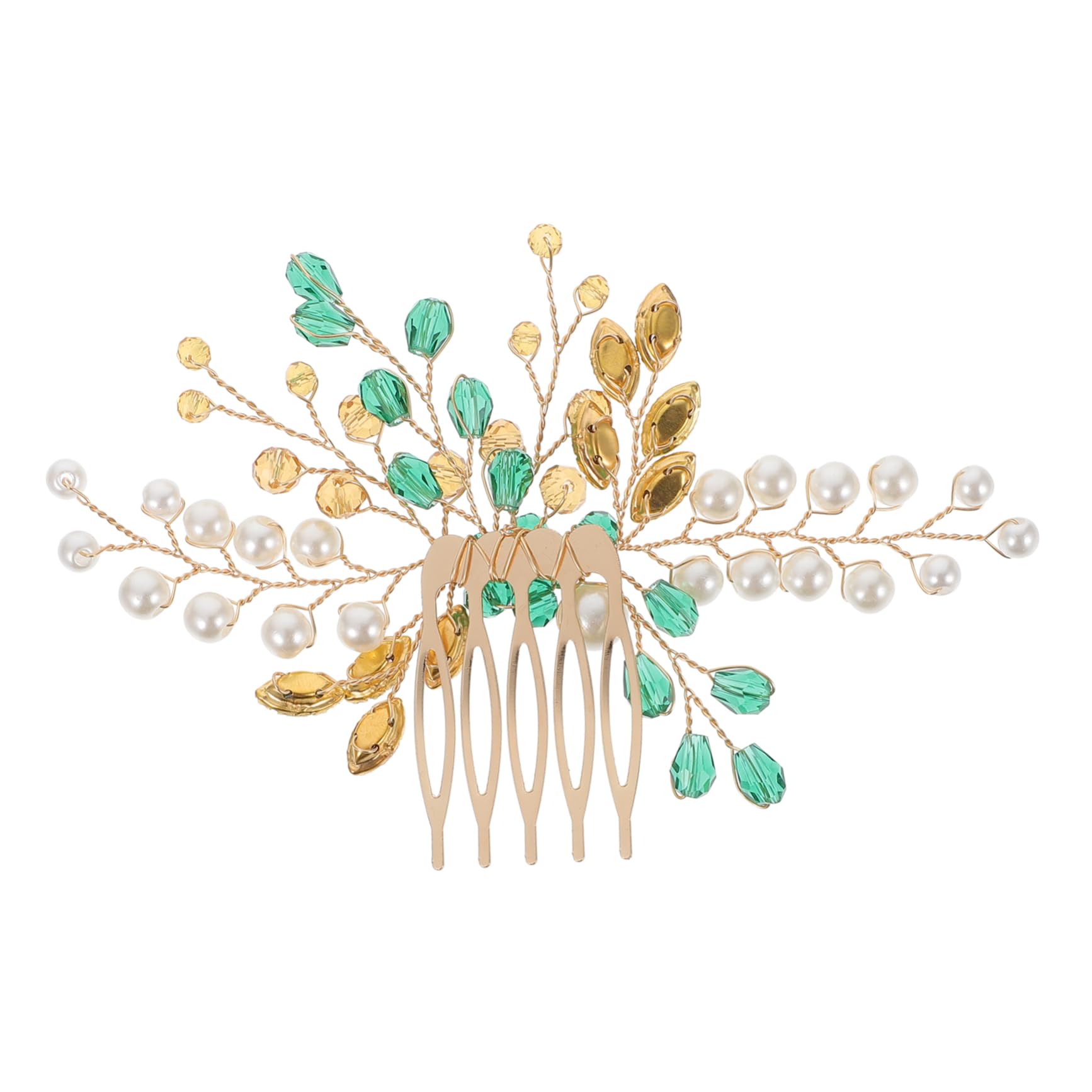 Ipetboom Wedding Headpiece for Bride Rhinestone Accessories for Women Bride Hair Accessories Green Hair Accessories for Prom Bridal Hair Accessories for Women Miss Hair Comb Metal Manual