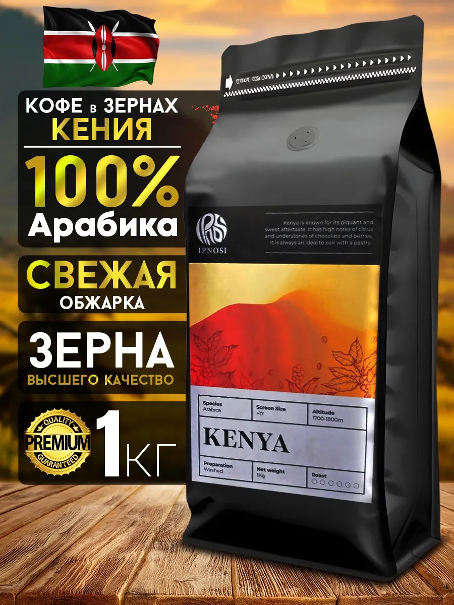 IPNOSI Кофе Кения в зернах 1 кг арабика 100% натуральный