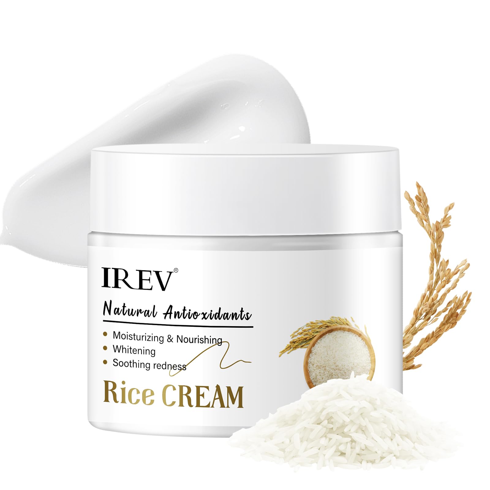 IREV Rice Moisturizing Cream Hydrating Face Moisturizer For Dry Combination Skin Daily Face Cream Targets Dryness Strengthens Skin Barrier Lightweight Fast Absorbing 1.76oz 50g