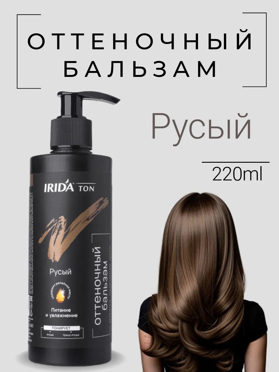 ОТТЕНОЧНЫЙ БАЛЬЗАМ ДЛЯ ВОЛОС IRIDA TON Ирида тон «Русый». Оттеночный бальзам для волос Русый от IRIDA — это универсальное оттеночное средство, которое поможет вам создать идеальный оттенок на натуральных, окрашенных и седых волосах. Это высокоэффективное средство включает пигменты прямого действия, которые быстро и равномерно проникают в структуру волос, обеспечивая насыщенный и стойкий цвет. Продукт не содержит аммиака и прочих агрессивных химических компонентов, благодаря чему бережно воздействует на волосы, не повреждая их. Тоник подходит для всех типов волос, обеспечивая естественный и ухоженный вид. Использование оттеночного бальзама Русый дает возможность экспериментировать с внешностью без риска испортить волосы. Бальзам не только придает роскошный оттенок, но и ухаживает за волосами, делая их мягкими, послушными и блестящими. Специальная формула средства улучшает структуру волос, восстанавливая их естественную силу и блеск. Тон легко смывается спустя несколько недель, что позволяет вам менять образ так часто, как вам захочется. С помощью этого оттеночного средства вы всегда будете выглядеть стильно и современно. Простой в использовании, бальзам равномерно распределяется по волосам, обеспечивая однородное покрытие без пятен и разводов. Его можно наносить дома, не прибегая к помощи профессионалов. Результат порадует вас уже после первого применения, делая волосы красивыми и сияющими с первого взгляда. Этот продукт станет отличным выбором для тех, кто хочет подчеркнуть свою индивидуальность и заботится о здоровье своих волос. Попробуйте оттеночный бальзам Русый от IRIDA и оцените все преимущества тонировки. Он идеально подходит для тех, кто хочет освежить цвет, скрыть седину или придать новый оттенок своим волосам, не прибегая к стойким краскам. Наслаждайтесь красивым и насыщенным цветом, который будет радовать вас каждый день. Данный уход можно использовать для окрашенных волос, он освежит цвет и позволит увеличить время между стойкими окрашиваниями.