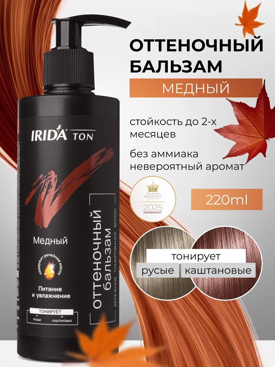 IRIDA Copper Hair Tinting Conditioner, 220 ml, is an excellent choice for those looking to refresh their look, add brightness, depth, and even color to their locks.