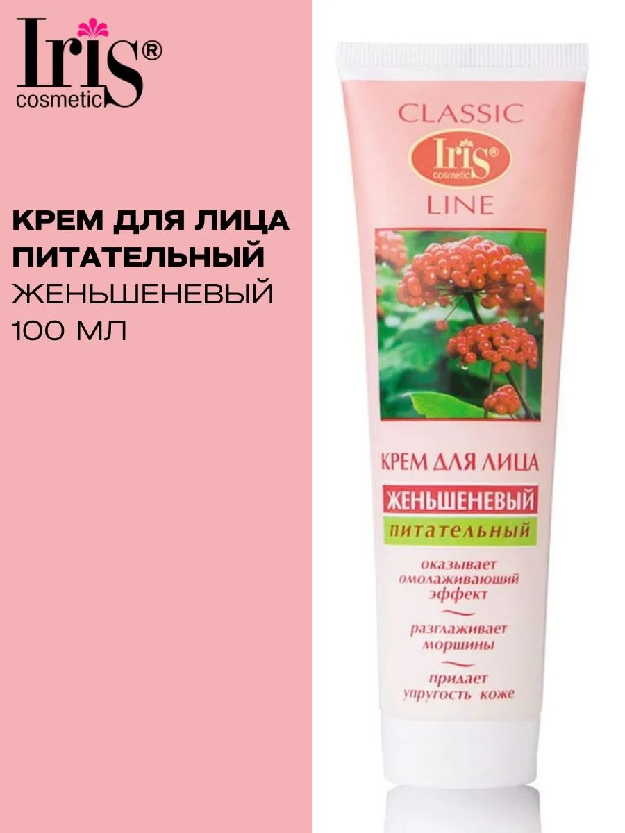 Крем для лица Женьшеневый бренда Iris Cosmetic Белорусской уходовой косметики для женщин разработан для бережного комплексного ухода за кожей любого типа. Невесомая текстура быстро впитывается, не оставляя ощущения липкости или жирности. Специально подобранный состав включает в себя увлажняющие компоненты, которые помогают сохранить оптимальный уровень увлажненности в течение всего дня. Экстракт женьшеня активно питает и увлажняет кожу, оказывает тонизирующее, омолаживающее и защитное действие, стимулирует процессы обновления, разглаживает мелкие морщины, делает кожу гладкой и упругой. Благодаря легкой текстуре он идеально подходит как основа для макияжа, обеспечивая долговременное увлажнение и защиту от негативного воздействия окружающей среды. Для эффективного применения небольшое количество нанесите на чистую кожу легкими массажными движениями по линиям наименьшего растяжения утром и / или вечером.