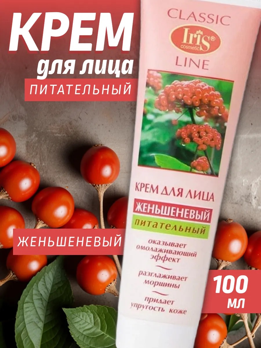 Iris Крем для лица "Женьшеневый" питательный для всех типов кожи. Питательный крем для ухода за кожей лица любого типа. Экстракт ЖЕНЬШЕНЯ активно питает и увлажняет кожу, оказывает тонизирующее, омолаживающее и защитное действие, стимулирует процесс обновления клеток эпидермиса, разглаживает мелкие морщины, придает коже свежий и здоровый вид.