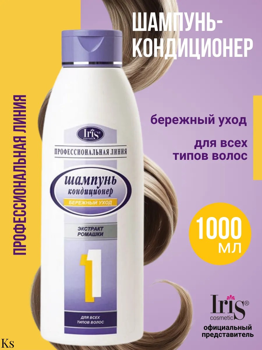 Shampoo for all hair types No. 1 Gentle Care with Chamomile Extract. A professional line from the Belarusian cosmetics brand Iris Cosmetic. This shampoo gently cleanses hair and provides optimal care. Chamomile extract contains carotene, vitamins E, K, and B, providing a soothing, moisturizing, and strengthening effect. Chamomile is a well-known medicinal plant that contains many nourishing and healing substances. Thanks to its successful combination of vitamins, microelements, pectins, and acids, chamomile is ideal for hair and scalp care. Professional cosmetics are an excellent gift for any woman, whether for any occasion or just because. This restorative complex for the beauty and health of smooth, strong locks will be a pleasant addition to a birthday gift for a girlfriend, sister, or teenage daughter. A gift cosmetic set: shampoo and conditioner from this series will delight mom, grandma, and friend on March 8th and Mother's Day.