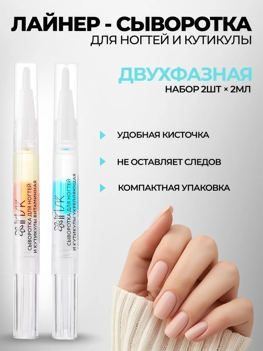 1) Strengthening serum "with sacristan seaweed extract and avocado oil" strengthens the nail plate, promotes nail growth.