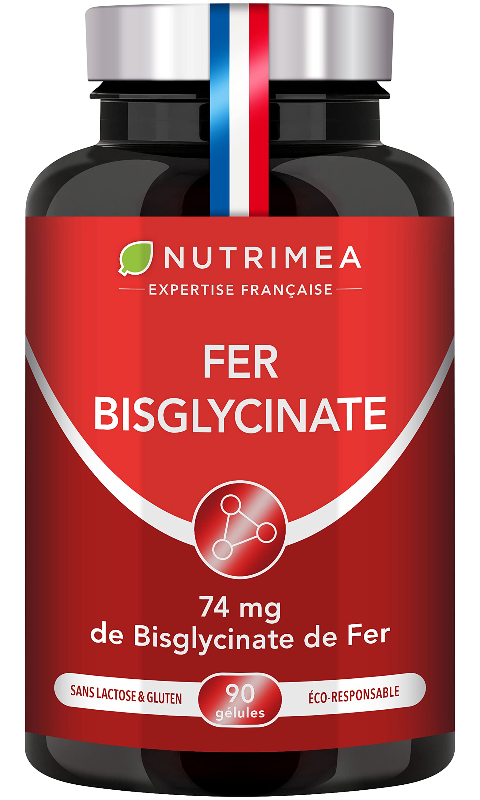 THE NUTRIMEA PROMISE: Our formula is based on a rigorous selection of the best ingredients to offer you a more complete product that works in depth. Our supplement is made in the purest way possible: it is vegan, GMO-free, stearate-free, gluten-free, lactose-free, and free of synthetic excipients. Made in France, strict controls ensure impeccable quality. FRENCH EXPERTISE: Nutrimea products are designed in France by our R D department. To offer you the best food supplements, Nutrimea also relies on a committee of 5 recognized experts in the fields of medicine, research, and traceability. Our products are made in France and are ISO 22000, HACCP, and GMP certified. Concerned about our planet, we have developed NEW ECO-RESPONSIBLE PACKAGING that is more respectful of the environment. DIRECTIONS FOR USE: Our supplement offers you a complete 3-month course of treatment. Thanks to its maximum bioavailability, Nutrimea iron provides you with 14 mg of elemental iron and 80 mg of vitamin C in just one capsule. This corresponds to 100 of the daily dose recommended by health authorities. If your iron intake needs recommended by your doctor are higher, you can easily adjust the dosage. OPTIMIZED BIOAVAILABILITY: Iron is essential but difficult to absorb. In fact, only 5 to 10 of the iron provided by food is actually assimilated by the body. This is why, based on available scientific studies, our formula contains the most assimilable form: Bisglycinate. Vitamin C, added to iron, acts synergistically to reduce fatigue. Nutrimea thus guarantees you a quality supplement. WHY TAKE IRON? Present in all the body's cells, it is essential to our health. Indeed, it ensures the transport of oxygen in the blood and the formation of red blood cells. An iron deficiency leads to fatigue, sleep problems, decreased physical and intellectual performance, and even anemia. The people most affected are primarily women, but it is also noted that 30 of young children have iron deficiencies.LA PROMESSE NUTRIMEA : notre formule repose sur une sélection rigoureuse des meilleurs composants afin de vous proposer un produit plus complet qui agit en profondeur. Notre complément est élaboré de la façon la plus pure possible : il est vegan, sans OGM, sans stéarate, sans gluten ni lactose et sans excipient d'origine synthétique. De fabrication française, des contrôles stricts permettent de garantir une qualité irréprochable. EXPERTISE FRANÇAISE : les produits Nutrimea sont conçus en France par notre département R D. Pour vous proposer les meilleurs compléments alimentaires, Nutrimea s'appuie aussi sur un comité de 5 experts reconnus dans les domaines de la médecine, de la recherche, de la traçabilité. Nos produits sont fabriqués en France et sont certifiés ISO 22000, HACCP et BPF. Soucieux de notre planète, nous avons développé un NOUVEAU PACKAGING ECORESPONSABLE plus respectueux de l'environnement. CONSEIL D'UTILISATION : notre complément vous offre une cure complète de 3 mois. Grâce à sa biodisponibilité maximale, le fer de Nutrimea vous apporte 14 mg de fer élément et 80 mg de vitamine C en 1 seule gélule. Cela correspond à 100 de la dose journalière recommandée par les autorités de santé. Dans le cas où vos besoins d'apport en fer recommandés par votre médecin sont plus importants, vous pouvez facilement adapter la posologie. BIODISPONIBILITE OPTIMISEE : le fer est indispensable mais difficile à absorber. En effet, seulement 5 à 10 du fer apporté par l'alimentation est réellement assimilé par l'organisme. C'est pourquoi, en nous appuyant sur les études scientifiques disponibles, notre formule contient la forme la plus assimilable : le Bisglycinate. La vitamine C, ajoutée au fer, agit en synergie pour réduire la fatigue. Nutrimea vous garantit ainsi un complément de qualité. POURQUOI PRENDRE DU FER ? Présent dans toutes les cellules de l'organisme, il est indispensable à notre santé. En effet, il assure le transport de l'oxygène dans le sang et la formation des globules rouges. Une carence en fer entraîne de la fatigue, des problèmes de sommeil, la baisse des performances physiques et intellectuelles, voire de l'anémie. Les personnes les plus touchées sont en premier lieu les femmes, mais on note aussi que 30 des jeunes enfants présentent des carences en fer.