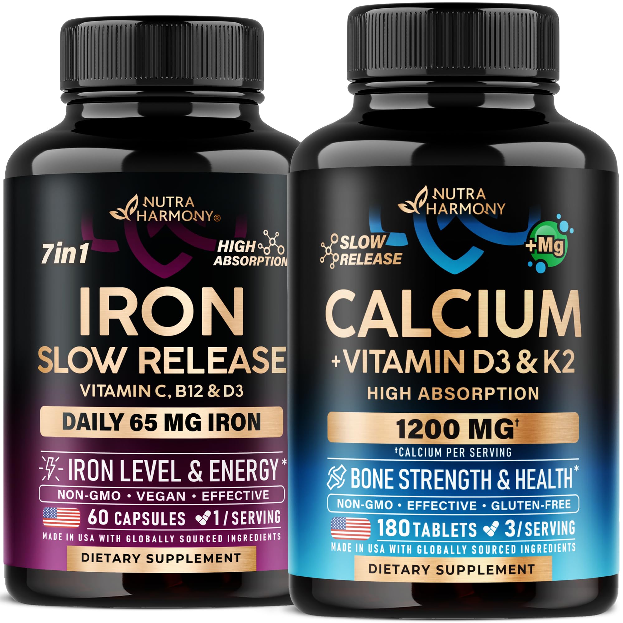 Iron Capsules Calcium Tablets by Nutraharmony, Women Health Support.