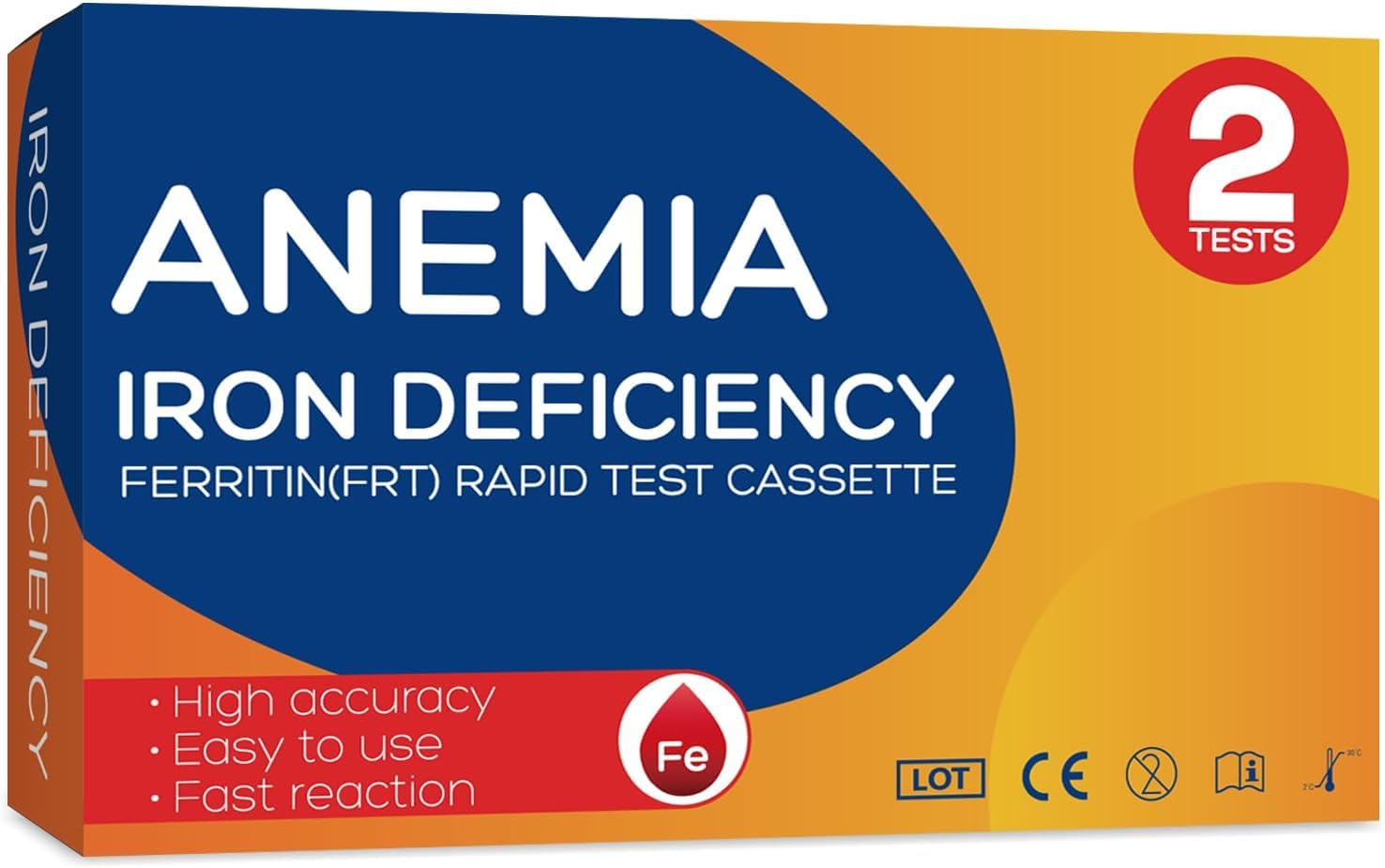 The iron checking kit provides accurate results within a few minutes, allowing you to quickly assess your iron levels. This 2-pack iron test kit is suitable for men and women of all ages, making it an ideal choice for families to maintain overall health and regularly monitor their iron levels. This 2-pack kit ensures you have a reliable solution for ongoing iron level monitoring. The at-home iron test kit is quick and easy to use, allowing you to conveniently monitor your iron levels from the comfort of your home. Iron is the most abundant essential trace element in the human body, helping to maintain vitality and health. Use our ferritin test to measure your iron level. Our ferritin test kit helps monitor iron levels to prevent deficiencies, easily measure your ferritin levels with this test, which is an important indicator of your body's iron reserves.