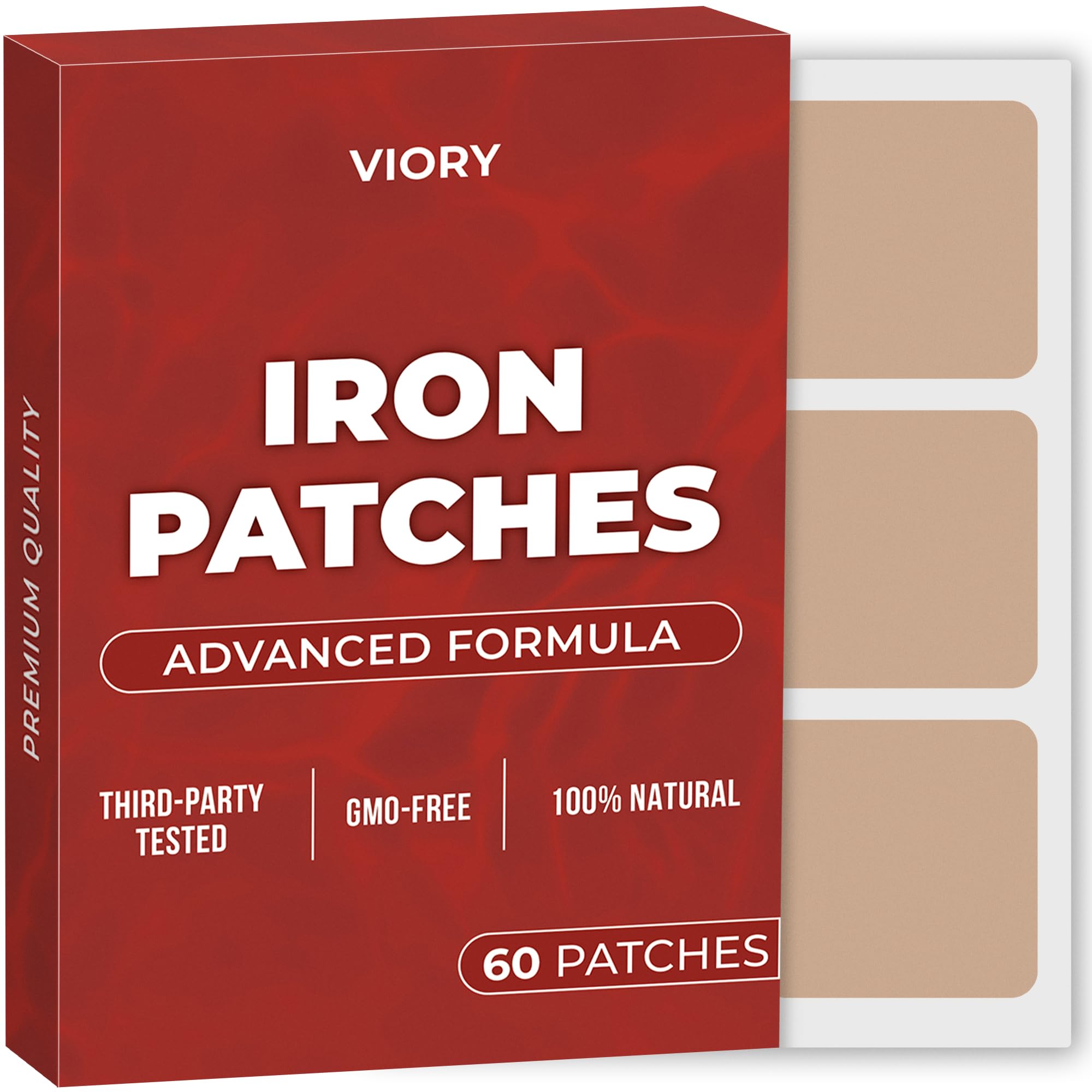 Iron Patches (Pack of 60) - 100% Natural Patch for Women and Men - with Biotin - Energy Focus & Body Support - Enhanced Formula