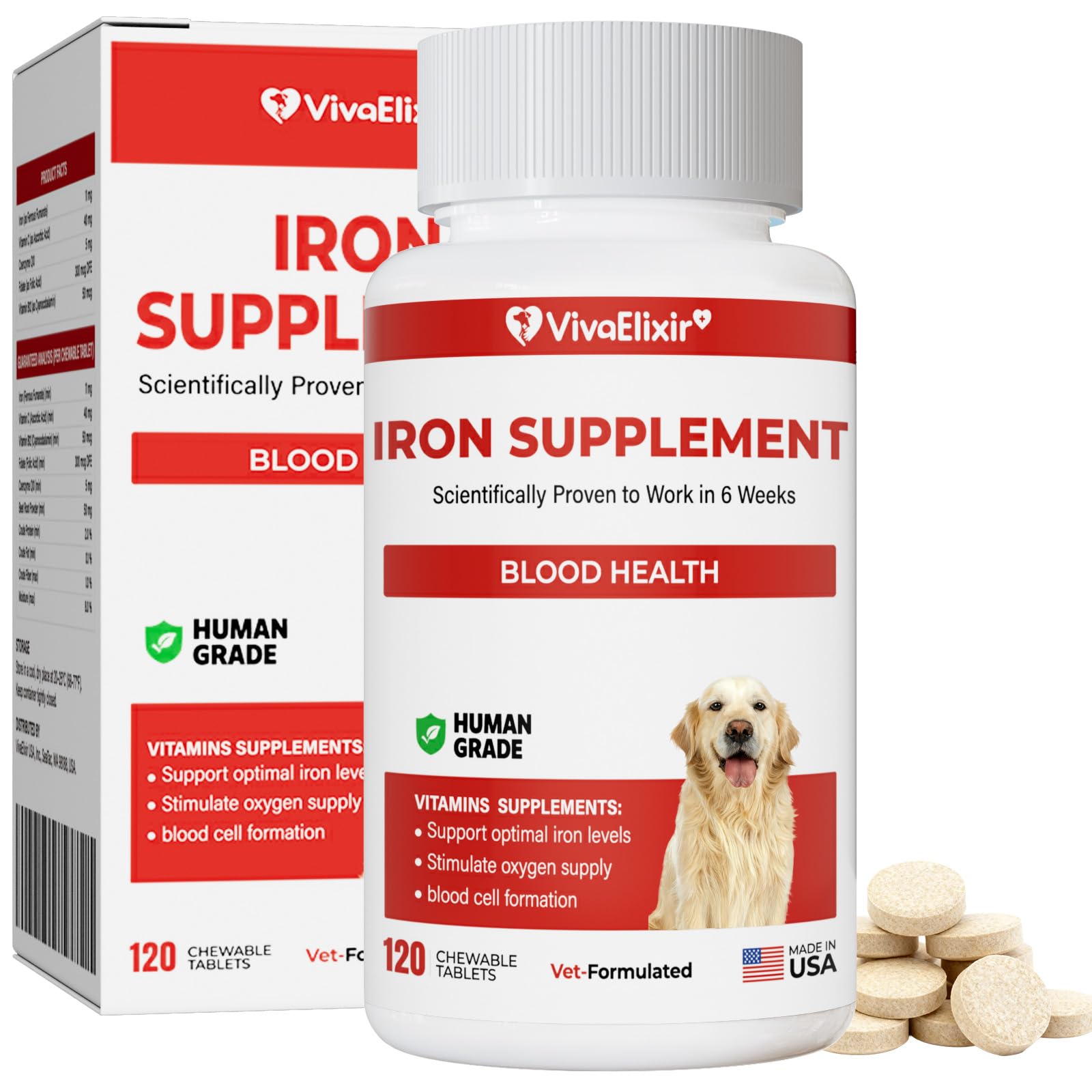 Iron Supplement for Dogs Supports Blood Health Red Blood Cell Formation & Oxygen Supply for Anemia Vitamin C Folate Vitamin B12 Boost Energy and Improve Blood Circulation 120 Tablets