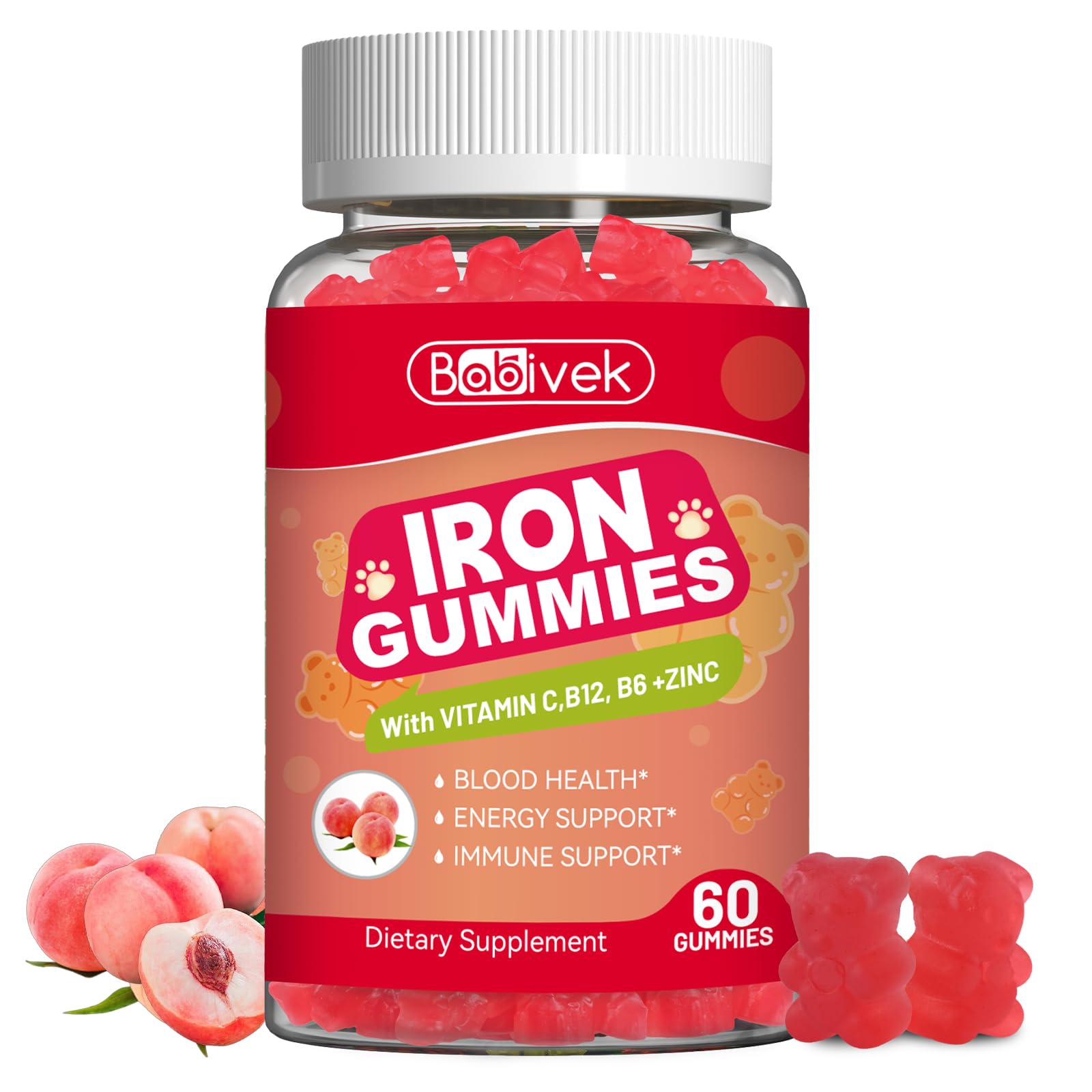 [Vegan, Clean Thoughtfully Made] These iron gummies are vegan, non-GMO, and free from gluten, made for clean daily supplementation. Suitable for plant-based lifestyles, iron gummies for women and men can fit easily into a mindful wellness routine. [Delicious Peach Flavor, 1-Month Supply] Enjoy a naturally flavored peach taste with these iron supplement gummies—no hard pills, no unpleasant aftertaste. With 60 iron gummies per bottle, this 1-month supply is perfect for consistent daily use, especially for iron gummies for women seeking both taste and convenience. [Gentle, Easy-to-Chew Iron Gummies] Designed to be easier to take than traditional tablets, these iron gummies offer a chewable, stomach-friendly alternative. A great option for those who prefer iron supplement gummies and for women looking for enjoyable iron gummies for women. [Enhanced Nutrient Blend for Better Daily Intake] Our iron supplement gummies combine iron with folate, vitamin C, B12, B6, and zinc to support overall nutritional balance. These iron gummies help complement everyday diets, making iron gummies for women and men a smart daily wellness choice. [Complete Iron Support for Women Men] These iron gummies are formulated for both women and men, providing daily nutritional iron support in a convenient chewable form. Ideal as iron gummies for women and a gentle iron supplement gummies option for anyone seeking an easy daily iron routine.