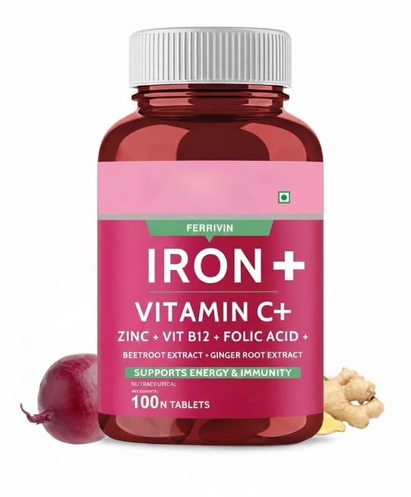 Iron + Vitamin C + Folic Acid Supplement | Fast Acting Pack of 100 Tablets