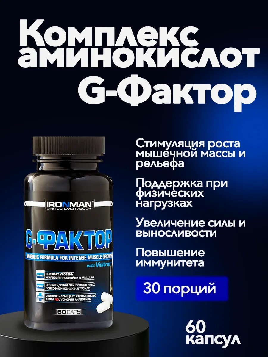 G-Фактор IRONMAN - это анаболическая, полностью натуральная формула, состоящая из трех аминокислот: L-аргинин, L-орнитин и L-лизин, взятых в специальном соотношении.