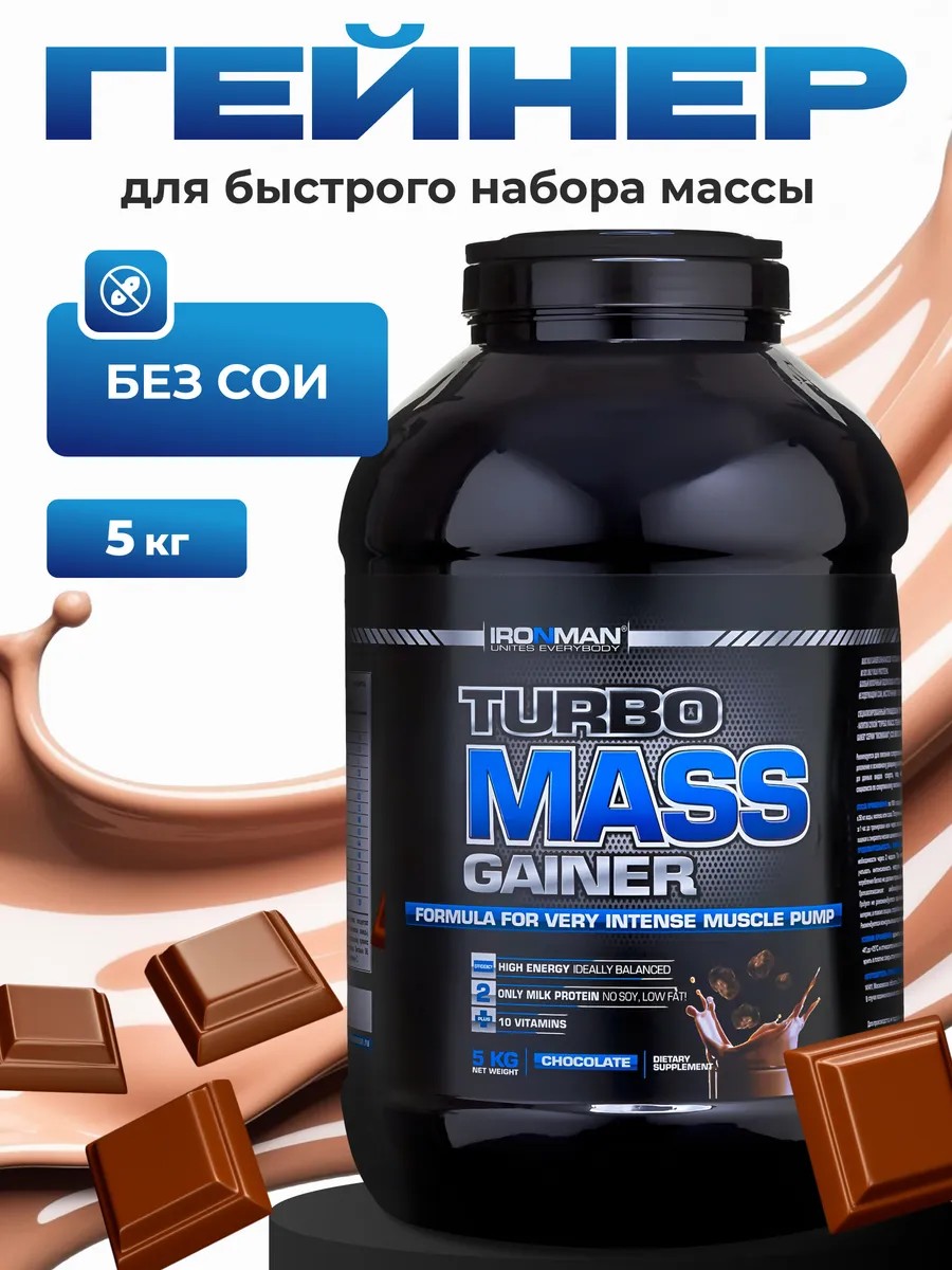 Гейнер Турбо Масс Ironman - идеальное средство для наращивания мышечной массы. Мощная многокомпонентная смесь, основанная на сывороточном белке, концентрате протеина и углеводной матрице без сои в составе, дополнительно обогащена 10 витаминами. Углеводная основа продукта - это моно-, ди- и олигосахариды, а белковая матрица основана исключительно на молочном и сывороточном белках, взятых в специальном соотношении. Продукт обеспечит индивидуальную дозировку питательных веществ для эффективного набора массы. Продукт поможет восстановиться после тренировки и увеличит силу ваших мышц. Лучший выбор для всех спортсменов и людей, которые заботятся о своем здоровье. Каждая порция содержит мальтодекстрин и натуральный сухой сахар, которые поддерживают необходимый для интенсивных тренировок уровень употребления калорий. Подойдет для профессионального спортсмена и любителя фитнеса. Продукт предназначен для увеличения мышечной массы и не подходит для периода похудения или сушки тела.