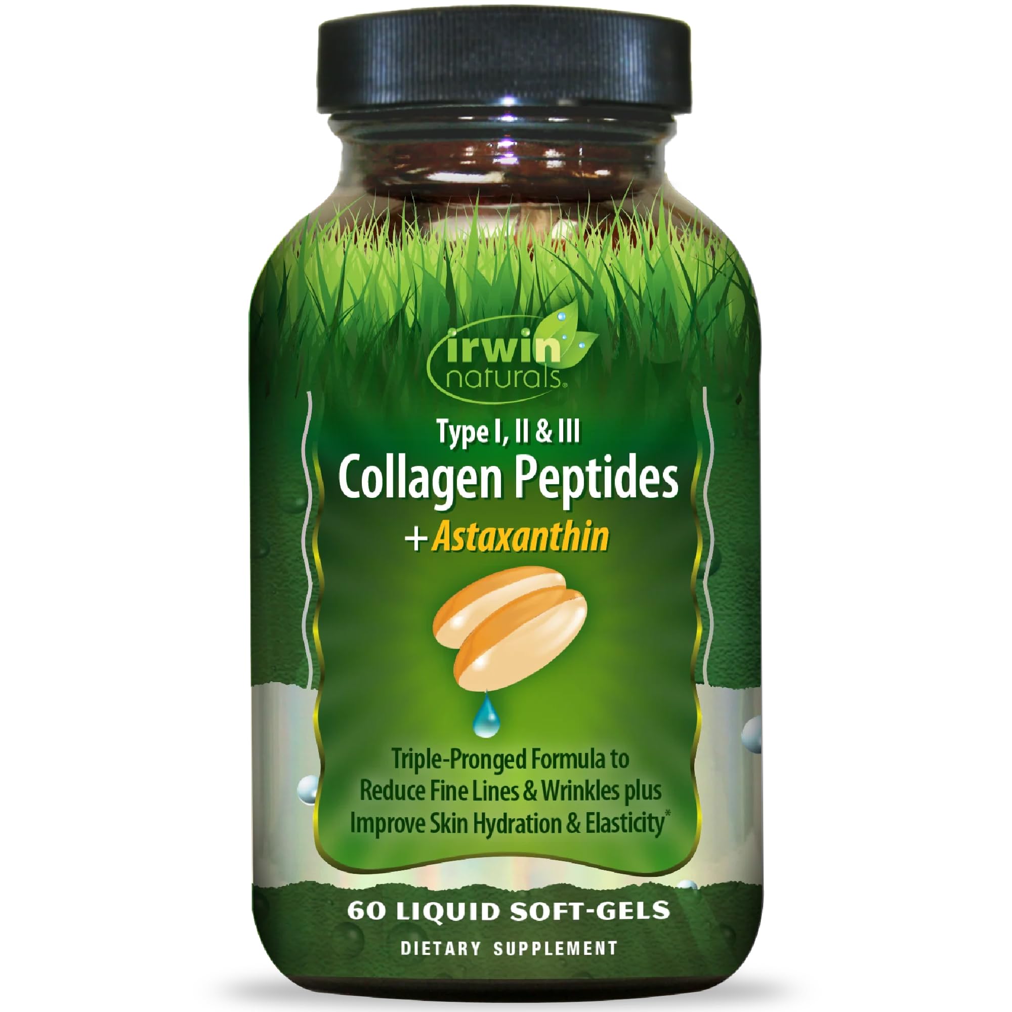 Irwin Naturals Collagen Peptides + Astaxanthin, Type I, II & III, 60 Liquid Soft-Gels