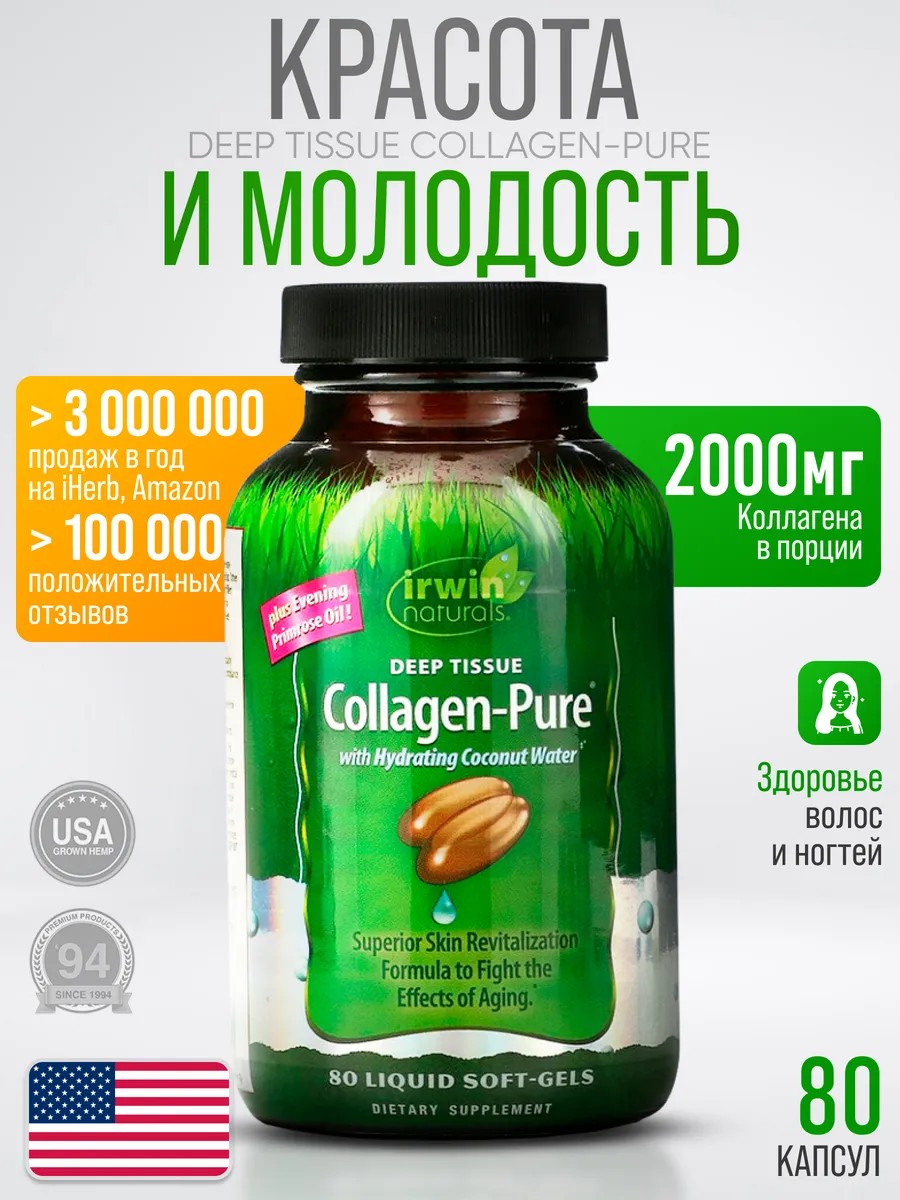 Почувствуйте разницу с Irwin Naturals Deep Tissue Collagen-Pure — вашим союзником в борьбе с возрастными изменениями!
