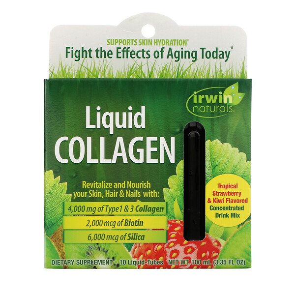 Irwin Naturals Liquid Collagen Tropical Strawberry & Kiwi 10 Liquid-Tubes 10 ml Each