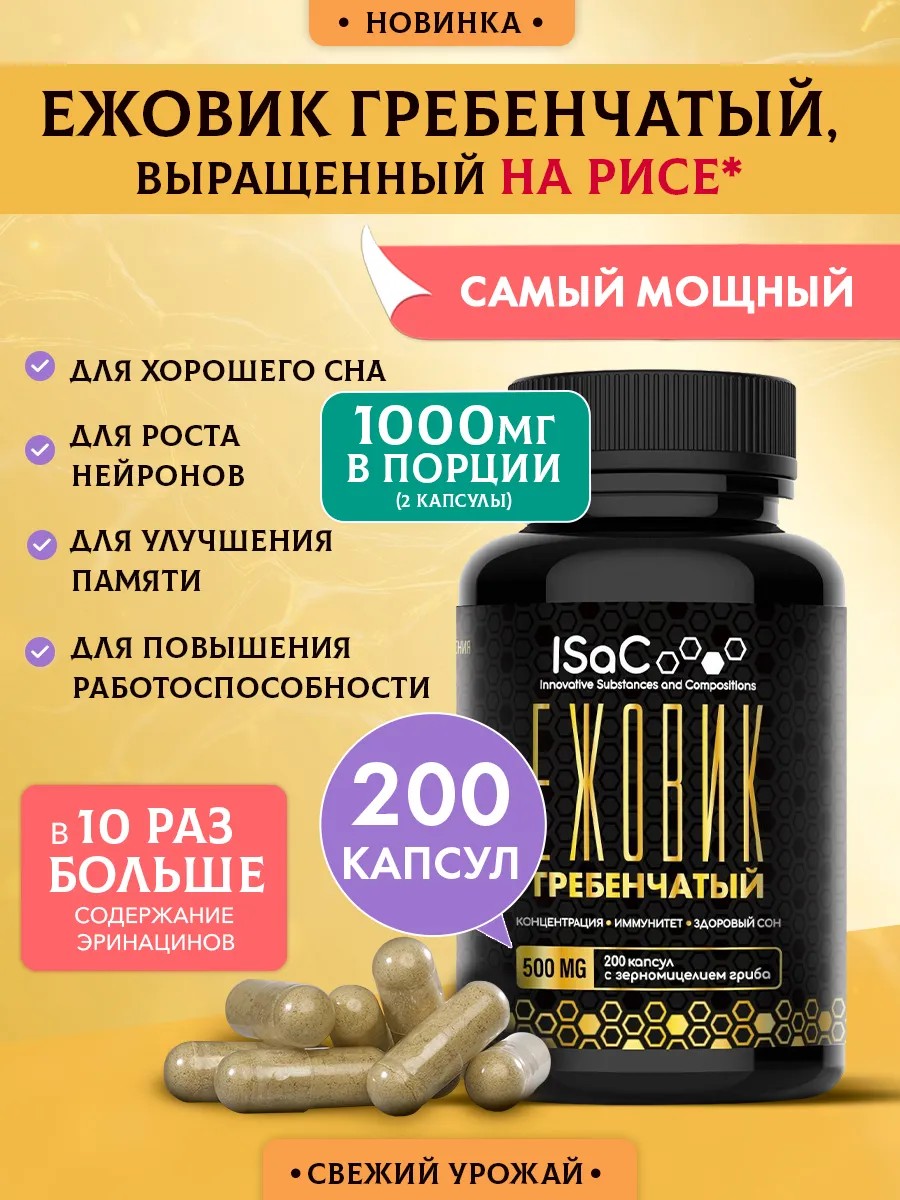 Ежовик гребенчатый мицелий 200 капсул по 500 мг