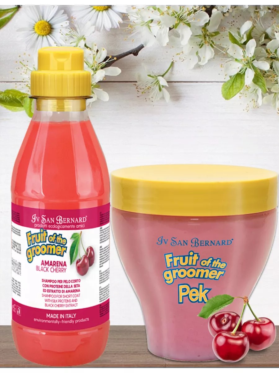 Шампунь разработан для частого применения. Восстанавливает и тонизирует шерсть и кожу. Полезные свойства активных компонентов вишни смешаны с защитным и укрепляющим действием протеинов шелка. Аромат черной вишни создаст приятное настроение.