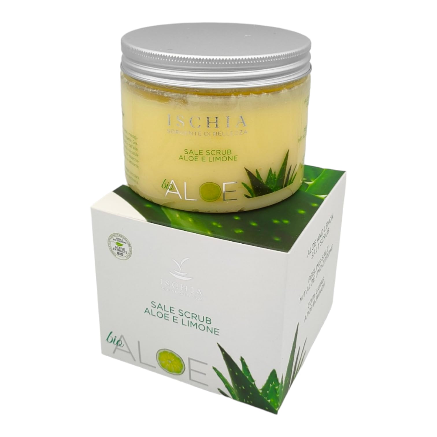 Ischia Sorgente di Bellezza ISB - Aloe and Lemon Scrub Salt "Organic Aloe" 500 ml with Organic Aloe Vera and Thermal Water from the island of Ischia