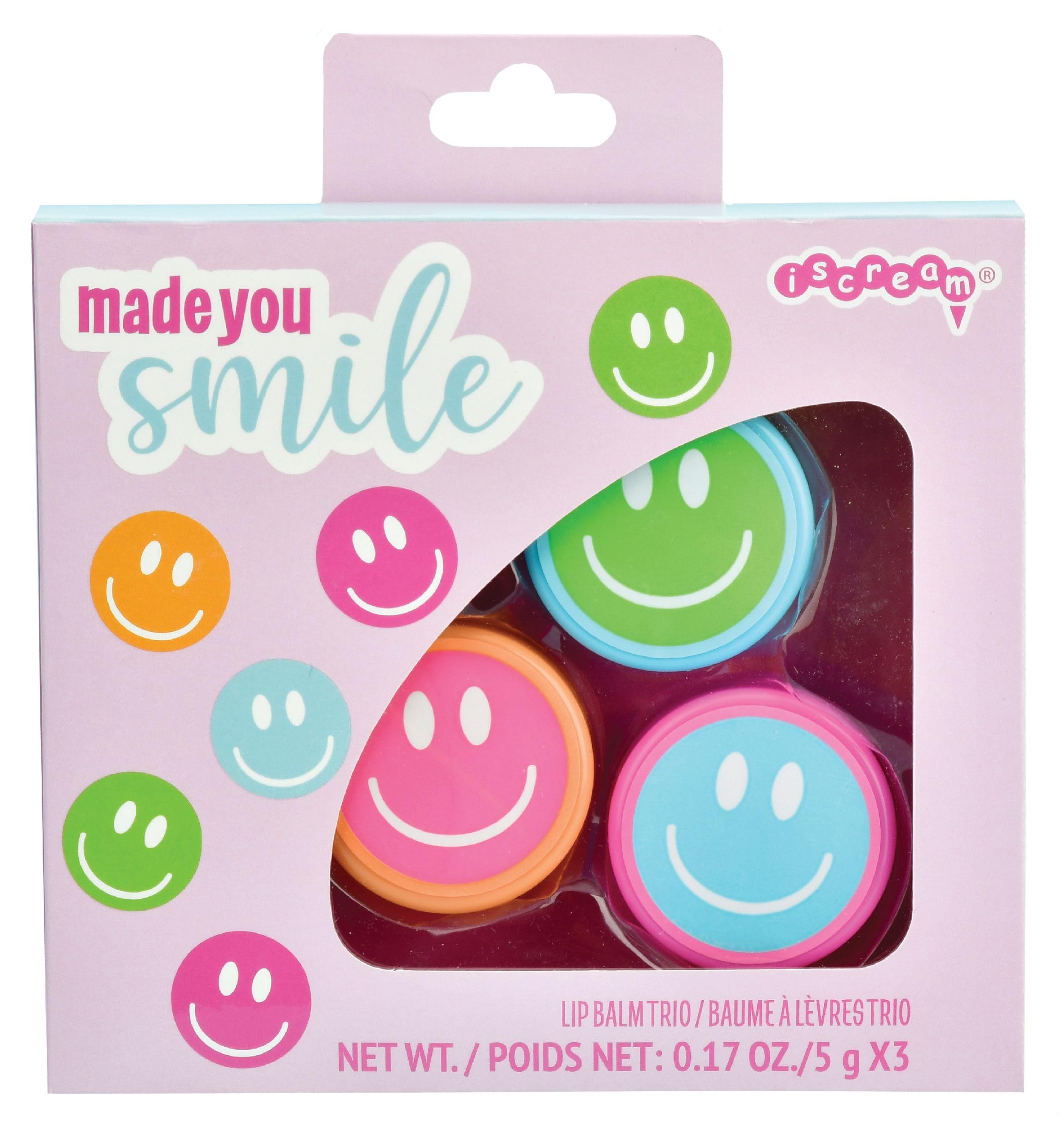 iscream Made You Smile Smiley Face Scented Classic Pot Style Set of 3 Lip Balms