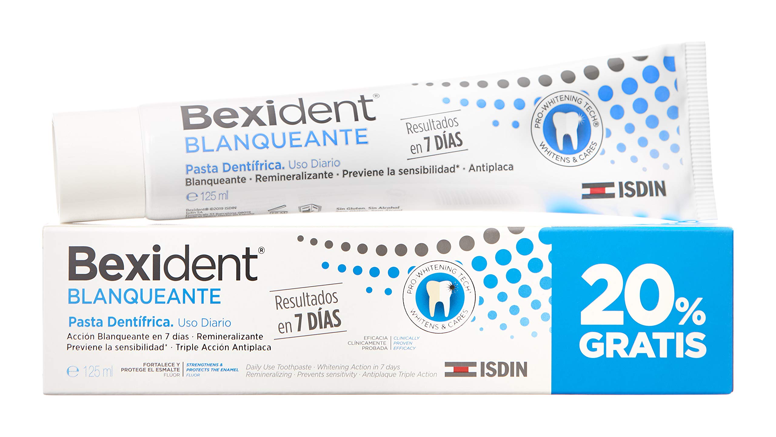 ISDIN Bexident Whitening Paste Toothpaste whitening and staining with results in 7 days daily use value pack 20 free 1 x 125 ml