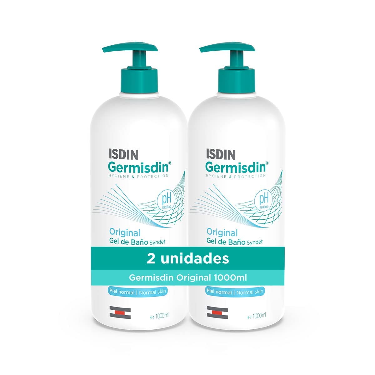 ISDIN Germisdin Original Gel de bain pour un nettoyage quotidien qui aide à protéger la peau et respecte la fonction barrière. Lot de 2 unités de 1 000 ml
