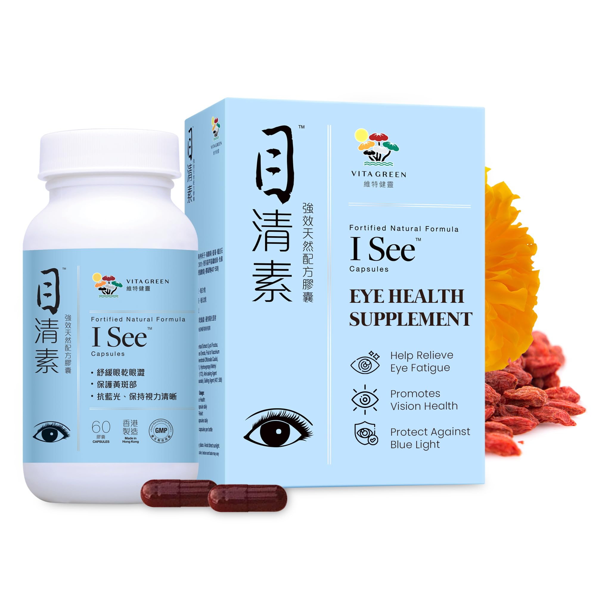 iSee Natural Herbal Eye Supplement Lutein & Zeaxanthin Eye Vitamins for Vision Health Relief from Eye Strain Dry Eyes Macular Support & Ocular Care 60 Capsules