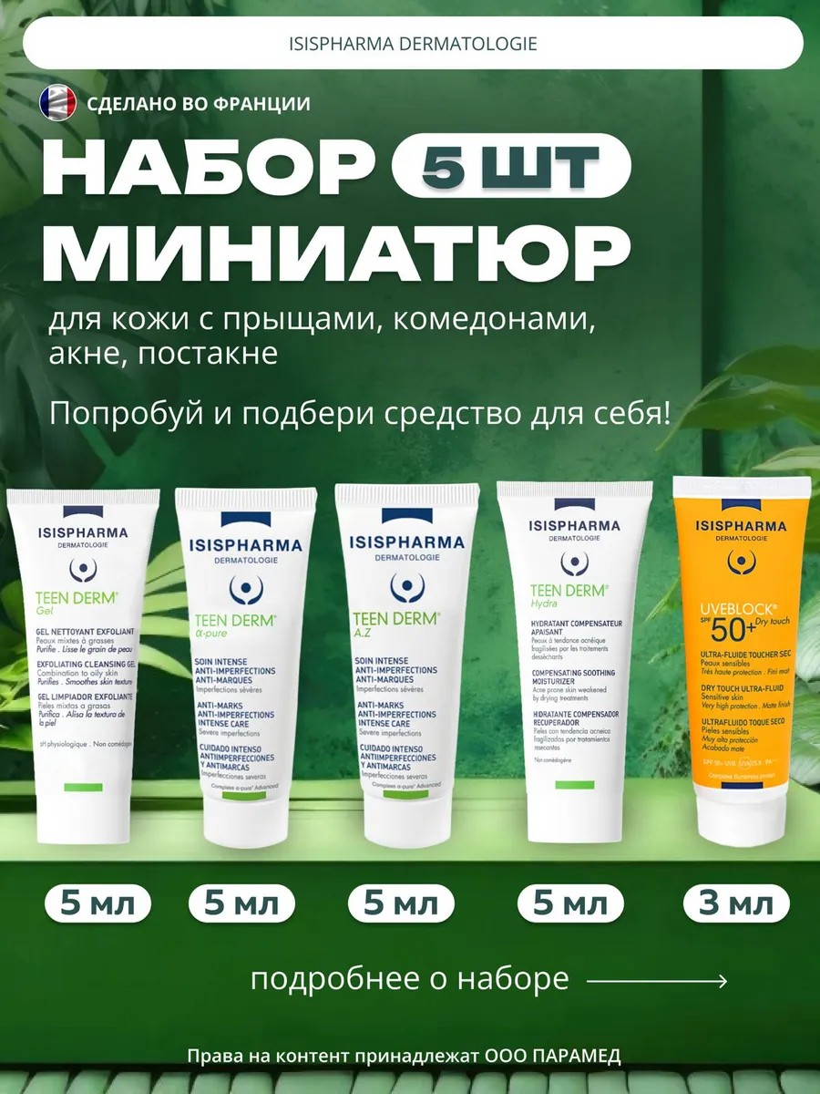 | Комплектация | Teen Derm Gel, Teen Derm A.Z.,Teen Derm a-Pure, Teen Derm Hydra, Uveblock Dry Touch SPF 50+ |