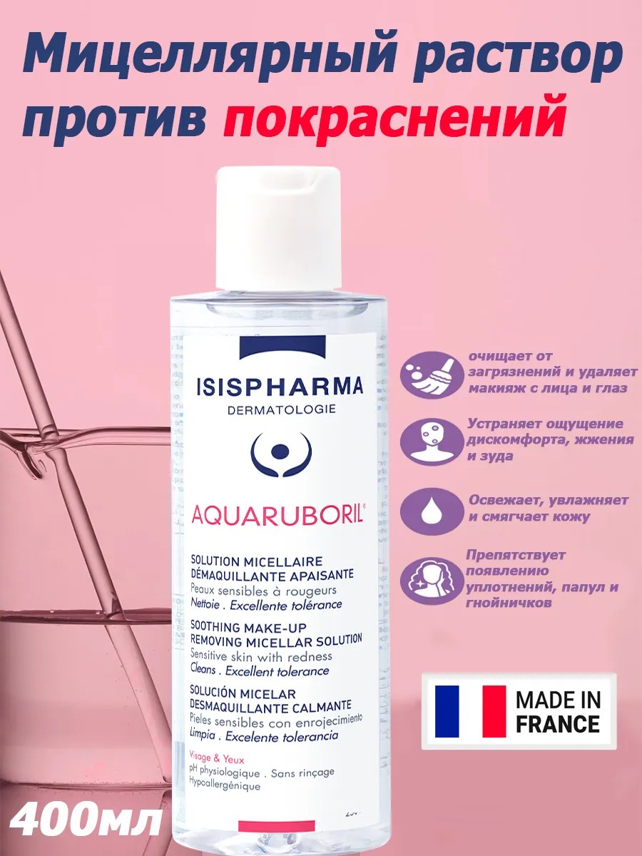 Если вы ищете идеальное средство для снятия макияжа, которое бережно заботится о чувствительной коже, обратите внимание на мицеллярный раствор от ISISPHARMA. Эта французская дерматокосметика специально разработана для ухода за реактивной кожей, склонной к покраснениям. Линия RUBORIL включает в себя адаптированные продукты, которые помогают восстановить естественный баланс кожи, и AquaRuboril — не исключение.Мицеллярный раствор AquaRuboril обладает уникальной формулой, богатой успокаивающими ингредиентами. Она эффективно и мягко очищает кожу, удаляя макияж с лица и глаз, не вызывая раздражения. Благодаря экстракту лютика луковичного, средство успокаивает, смягчает и снижает покраснение и воспаление. Цветочная вода римской ромашки также способствует успокоению и смягчению, что делает AquaRuboril идеальным выбором для ежедневного использования.Нанесение мицеллярной воды Исисфарм Акваруборил не требует смывания, что делает процесс демакияжа быстрым и удобным. Просто нанесите средство на ватный диск и аккуратно удалите макияж с лица и шеи. Подходит для утреннего и вечернего ухода, AquaRuboril поддерживает физиологический pH-баланс кожи и не содержит парабенов, мыла и отдушек, что делает его гипоаллергенным.Регулярное использование Isispharma AquaRuboril не только эффективно очищает, но и улучшает микроциркуляцию, уменьшая покраснения и дискомфорт. Это средство подходит для ухода за чувствительной кожей вокруг глаз, шеи и области декольте, а также помогает предотвратить появление сосудистой сетки и звездочек.Выбирая мицеллярную воду от ISISPHARMA, вы получаете качественный продукт, который заботится о вашей коже, не нанося ей вреда. Французская косметика, представленная в этой линии, отвечает самым высоким стандартам и является отличным выбором для взрослых и будущих мам. Откройте для себя мир бережного ухода с AquaRuboril и наслаждайтесь гладкой и здоровой кожей каждый день!