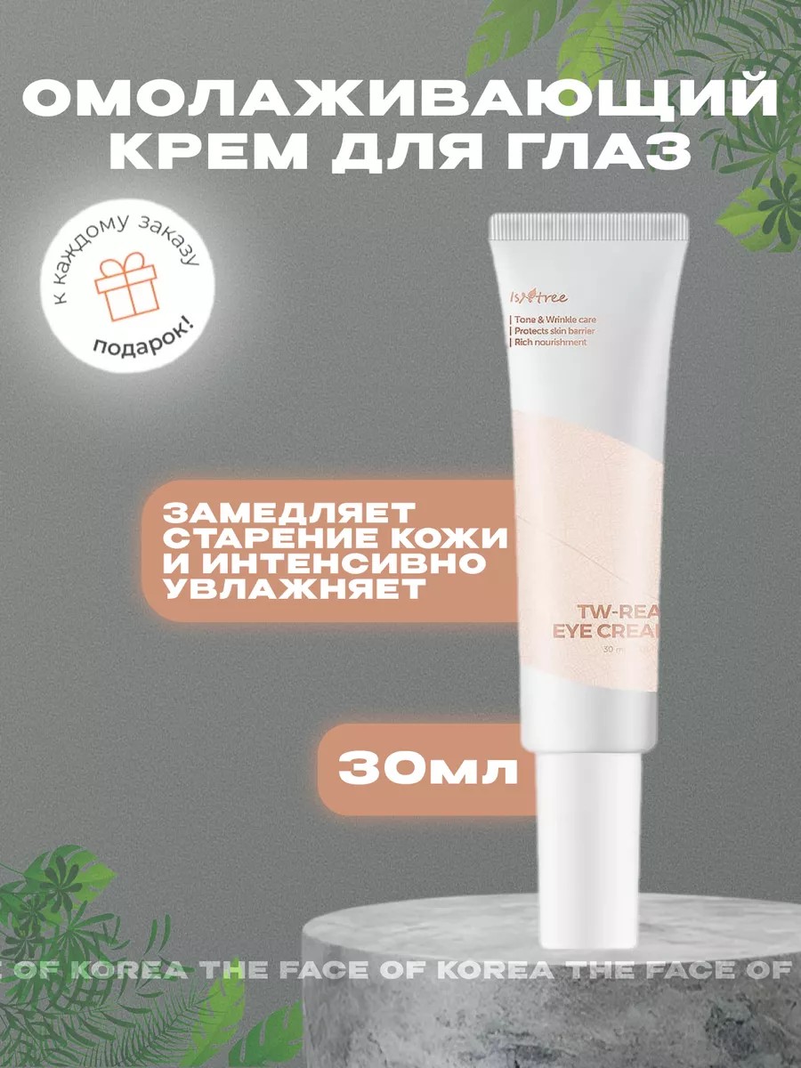 Инновационный продукт крем с эффектом ботокса! Кожа в области глаз наиболее тонкая нежная и чувствительная, она подвержена влиянию различных негативных факторов и часто первой теряет тонус. Именно поэтому ей необходим особый специальный уход за лицом, разработанный с учетом ее особенностей и строения. ISNTREE TW-REAL EYE CREAM не позволит вашему «зеркалу души» стать отражением усталости или вчерашнего недосыпа - с ним кожа станет заметно более подтянутой, а взгляд - сияющим. Это ваш друг в сохранении своей красоты! Уходовая дермокосметика повышает эластичность тканей уплотняет и оказывает лифтинг, снимает отечность. Усиленно питает восстанавливает и борется с сухостью. Так же рекомендуется для борьбы с: проблемными гусиными лапками в области глаз, проблемами в зоне носогубных складок и на шее и преждевременным старением. Крем для лица антивозрастной питательный с удобным дозатором, содержит лизата бифидобактерии и пептиды, наносится на зону век - именно вокруг глаз и предназначен для ежедневного бережного ухода за зрелой кожей: нормальной и чувствительной или сухой и комбинированной а так же жирной. Эффективно борется против мимических морщин, сокращает их глубину и разглаживает замедляет старение кожного покрова и интенсивно увлажняет а так же создает лёгкий осветляющий (отбеливающий) эффект, помогая избавиться от пигментных пятен устраняет тёмные круги под глазами, удаление - отёков мешков и припухлостей и выравнивает тон. Может использоваться, как база для век под макияж. Омолаживающее средство отличается идеальным разглаживающим и подтягивающим действием плюс сокращает глубину и выраженность морщин препятствует их появлению и разглаживает кожные заломы. Универсальный - возрастной, подходит женщинам, мужчинам: крем вокруг глаз от морщин 45 плюс 35 плюс и 50 + и 60 плюс.