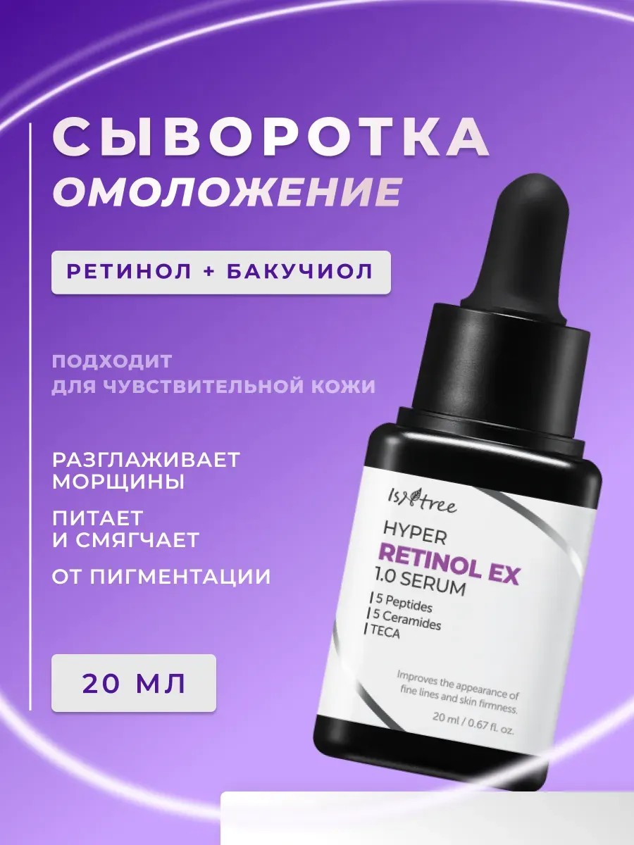Антивозрастная сыворотка IsNtree Hyper Retinol EX 1.0 Serum представляет собой инновационное средство для борьбы с признаками старения и улучшения общего состояния кожи. В основе формулы лежит комплекс Retinol EX 1%, который включает ретинол, ретинил пальмитат и бакучиол – активные компоненты, стимулирующие обновление клеток и выработку коллагена. Это позволяет эффективно сокращать глубину морщин, особенно в области межбровья, носогубных складок и на лбу, а также разглаживать текстуру кожи.