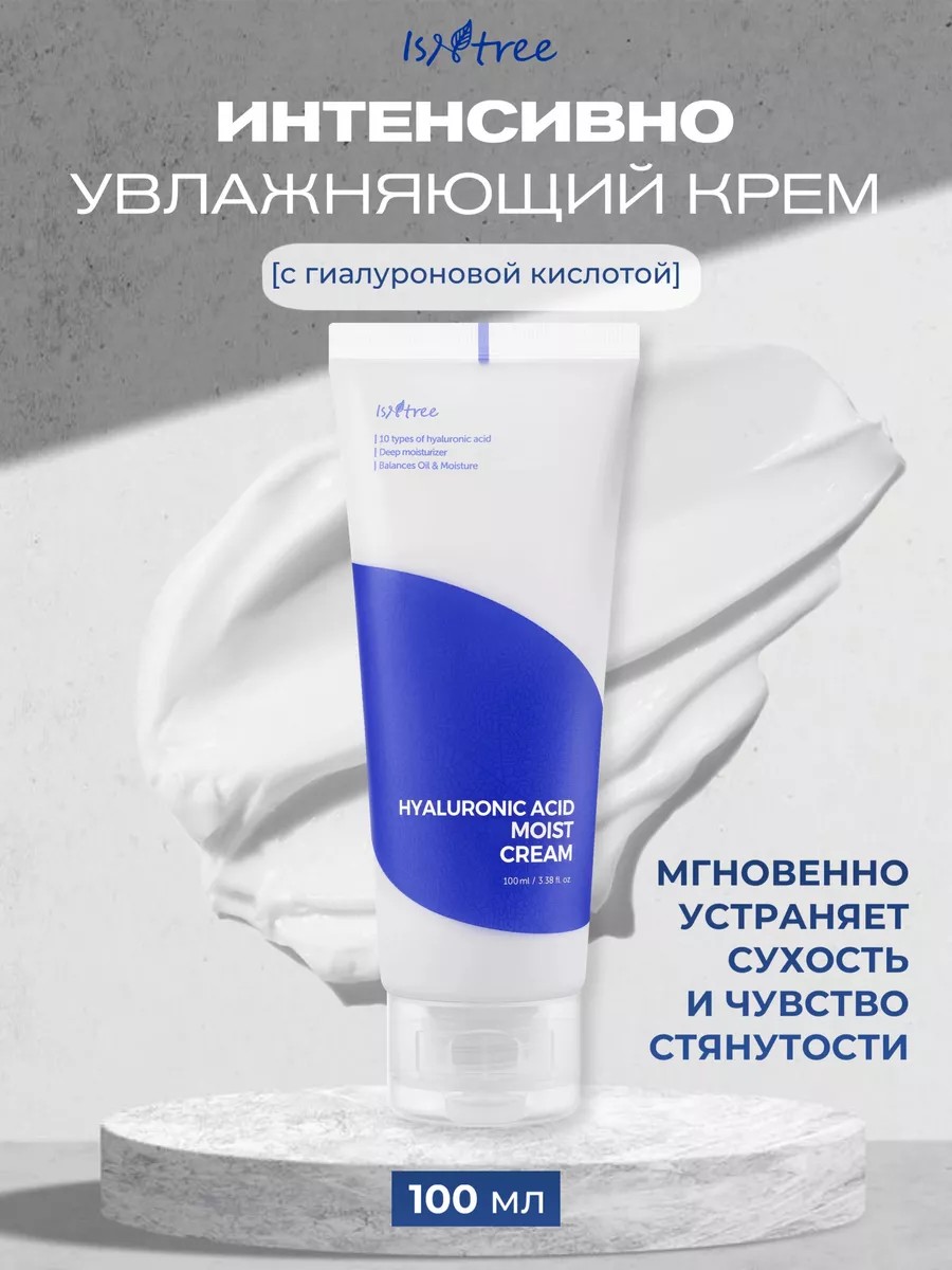 IsnTree Hyaluronic Acid Moist Cream is a Korean moisturizer designed for intensive skin care.