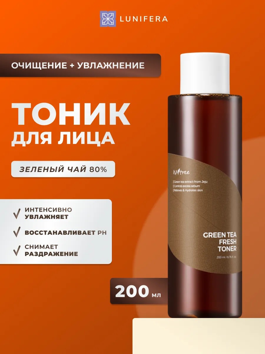 This Korean facial toner, based on green tea from Jeju Island, deeply moisturizes and restores the skin's water-oil balance. It contains 80% extract of young green tea leaves, rich in amino acids, minerals, and polyphenols.