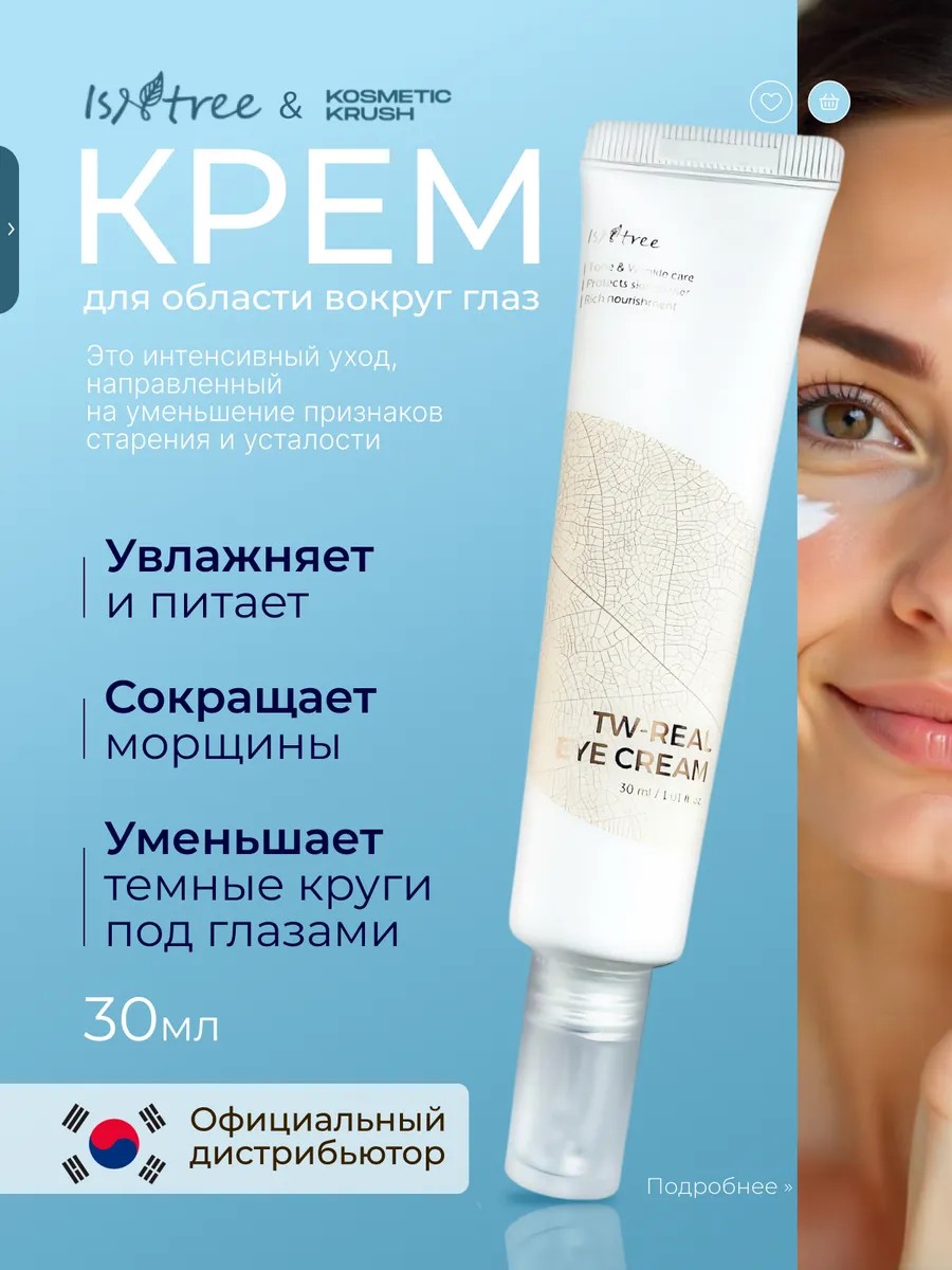 | Полное наименование товара | Антивозрастной крем для век с пептидами и бифидобактериями ISNTREE TW-Real Eye Cream, 30 мл |