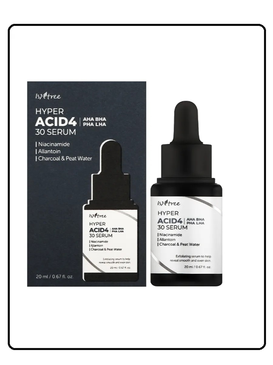 IsNtree Hyper Acid4 AHA BHA PHA LHA 30 Serum exfoliates the stratum corneum, cleanses pores, and prevents oily shine and comedones.