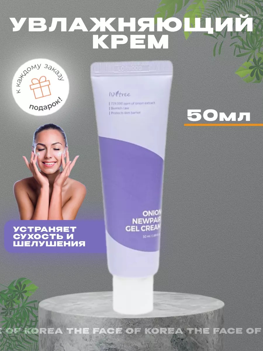 This Korean super-hydrating gel cream contains three types of hyaluronic acid to restore and hydrate sensitive skin prone to irritation and breakouts. Onion Newpair Gel Cream from Isntree is made directly from Korea. A light, soothing premium Korean cream fluid for imperfections with hyaluronic acid and natural Muan onion concentrate, with an organic acid and vitamin composition: AHA, C, B1, B2, B3, B9, PP, E, for a whitening effect, creates a protective barrier, relieves redness, flaking and inflammation from dryness, easily gets rid of pimples, acne, comedones, protection against acne, anti-acne and cleansing from blackheads in adolescents, removal and whitening of pigmentation and lightening of age-related pigment spots and freckles, exfoliating and lightening traces of post-acne from swelling around the eyes and puffiness