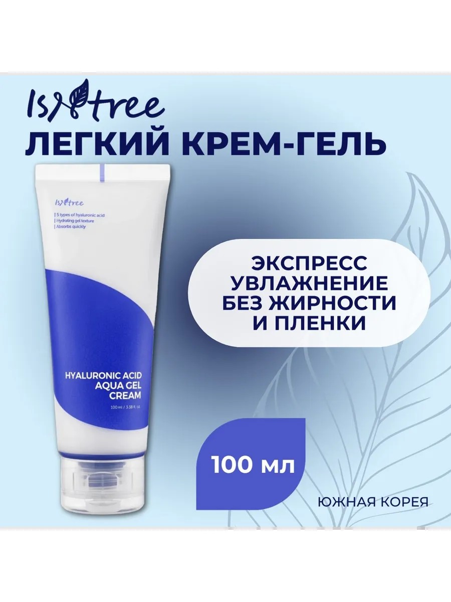 Увлажняющий гель-крем с гиалуроновой кислотой IsNtree Hyaluronic Acid Aqua Gel Cream мгновенно устраняет сухость и чувство стянутости, а благодаря лёгкой гелевой консистенции идеально подойдёт для лета и в качестве базы под макияж.