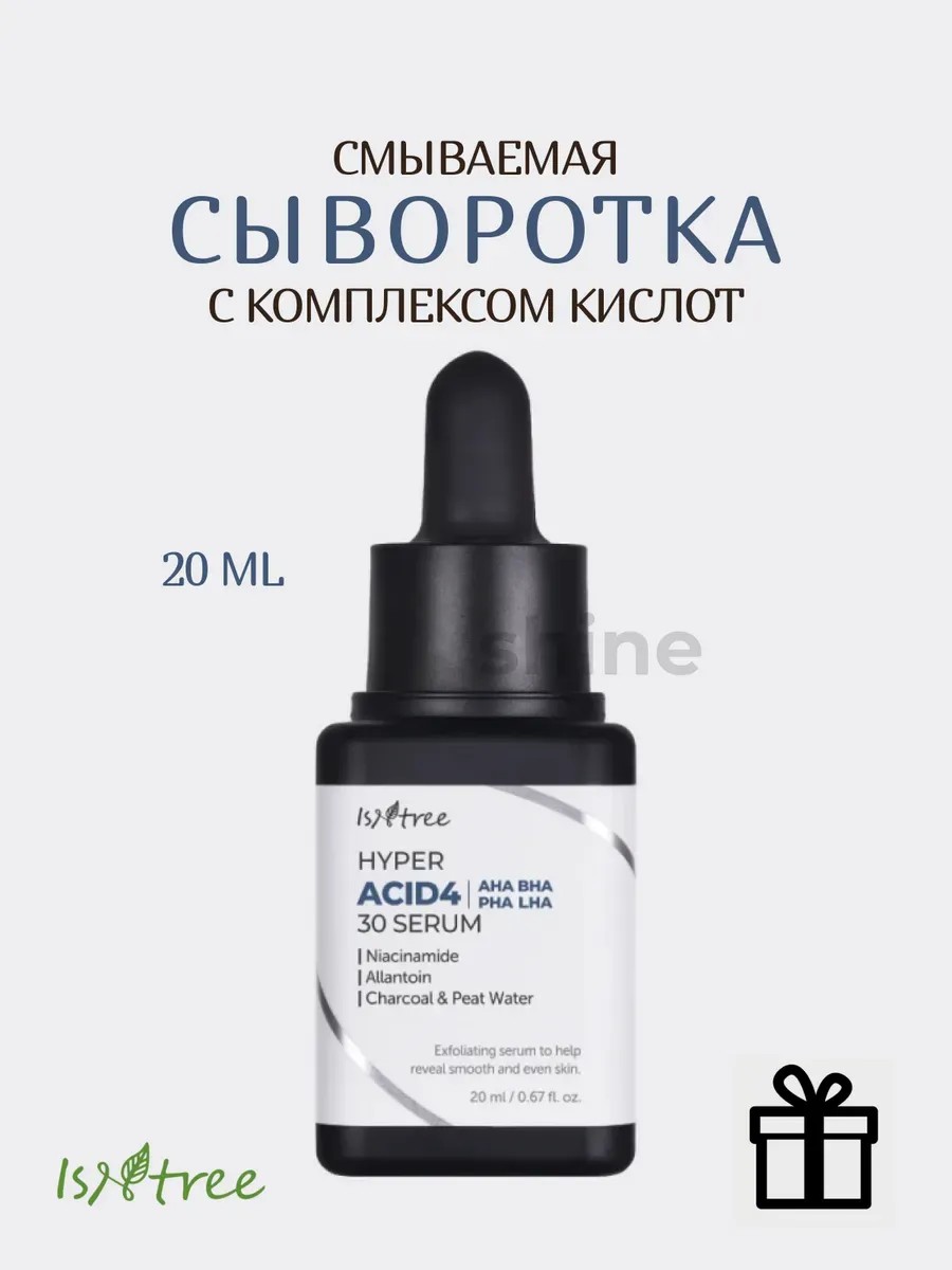 Пилинг-сыворотка IsNtree Hyper Acid4 AHA BHA PHA LHA 30 Serum отшелушивает роговой слой, очищает поры, предотвращает появление жирного блеска и образование комедонов.