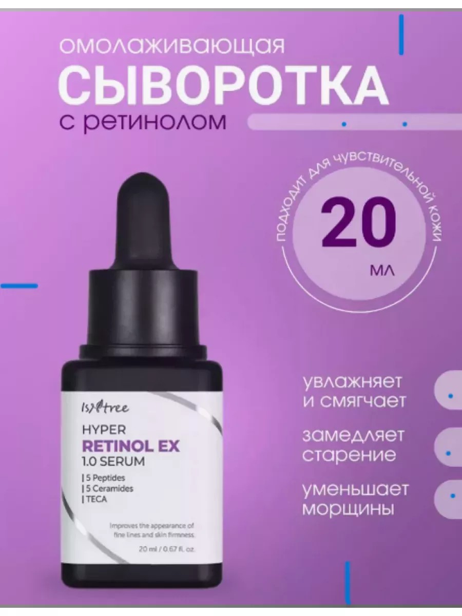 Активная разглаживающая сыворотка с ретинолом IsNtree Hyper Retinol EX 1.0 Serum направлена на интенсивную борьбу с мелкими мимическими морщинами и сокращает глубину выраженных.