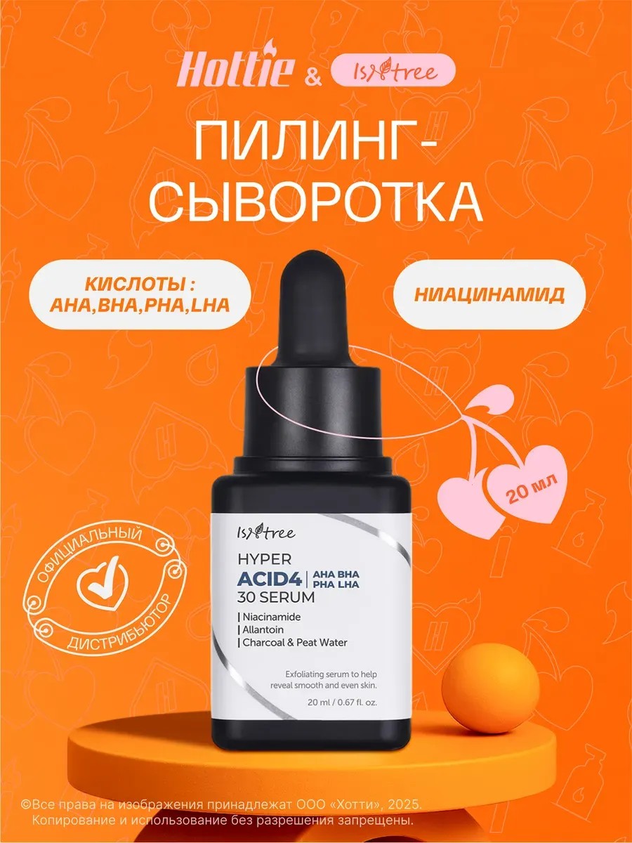 Сыворотка-пилинг с кислотами Isntree Hyper ACID4 AHA BHA PHA LHA 30 Serum, 20 мл – это профессиональное средство корейской косметики, разработанное для глубокого очищения, обновления и улучшения текстуры кожи. В составе сыворотки содержатся четыре типа кислот: AHA (альфа-гидроксикислоты), BHA (бета-гидроксикислоты), PHA (полигидроксикислоты) и LHA (липо-гидроксикислоты), которые работают в комплексе для достижения заметных результатов. AHA мягко отшелушивают кожу, удаляют омертвевшие клетки и выравнивают тон, BHA глубоко очищают поры, уменьшая их размер и предотвращая появление акне. PHA и LHA обеспечивают деликатное обновление кожи, улучшают ее текстуру и поддерживают гидробаланс. В состав также включены успокаивающие компоненты, такие как экстракт центеллы азиатской и пантенол, которые снижают раздражение и укрепляют кожный барьер. Легкая текстура сыворотки быстро впитывается, не вызывая дискомфорта, и подходит для всех типов кожи, включая чувствительную. Продукт может использоваться как самостоятельное средство или в составе многоступенчатого корейского ухода. Регулярное применение сыворотки Isntree Hyper ACID4 заметно улучшает состояние кожи: она становится более гладкой, ровной и сияющей. Эта корейская косметика – отличный выбор для тех, кто хочет избавиться от несовершенств, очистить поры и улучшить текстуру кожи. Если вы ищете эффективное средство для глубокого очищения и обновления, сыворотка-пилинг Isntree станет вашим надежным помощником. Благодаря качеству и инновационным технологиям, характерным для корейской косметики, этот продукт станет незаменимым в вашем ритуале ухода. Популярные запросы: сыворотка-пилинг, корейская косметика, кислоты для кожи, AHA BHA PHA LHA, очищение пор, уход за кожей, Isntree, отшелушивание кожи, сыворотка для лица, обновление кожи.
