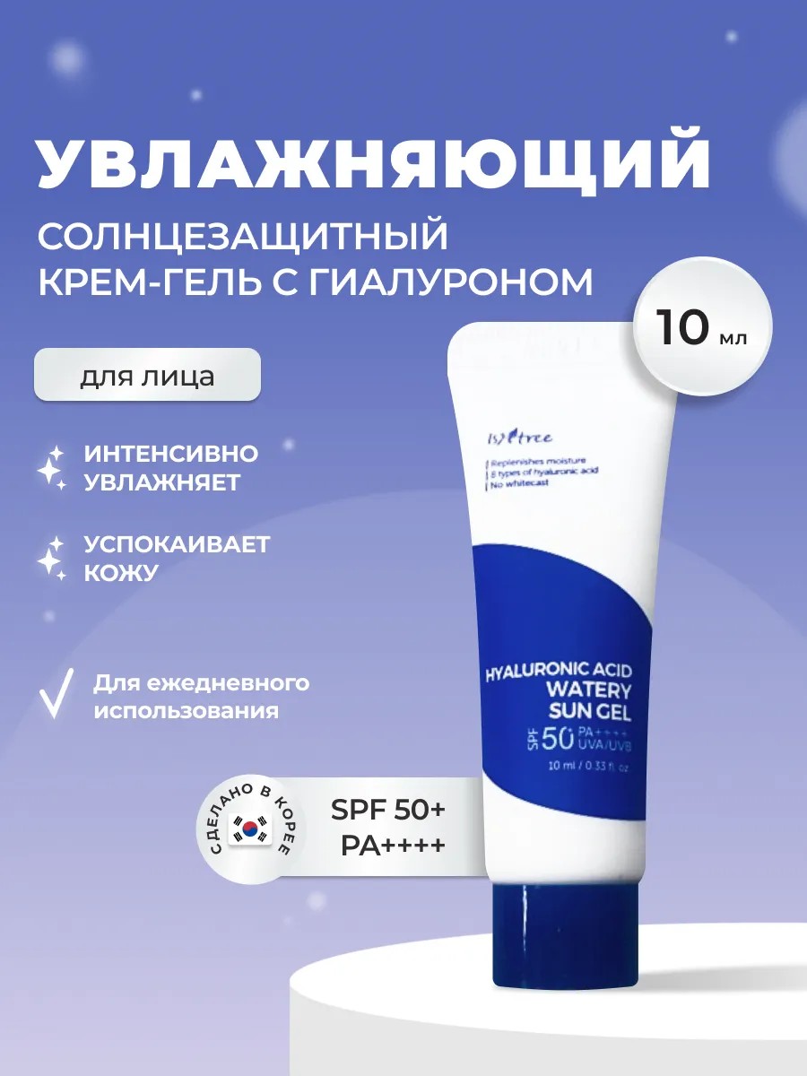Увлажняющий солнцезащитный гель Isntree Hyaluronic Acid Watery Sun Gel SPF 50+ PA++++ создан для защиты кожи от вредного воздействия UVA и UVB-лучей.